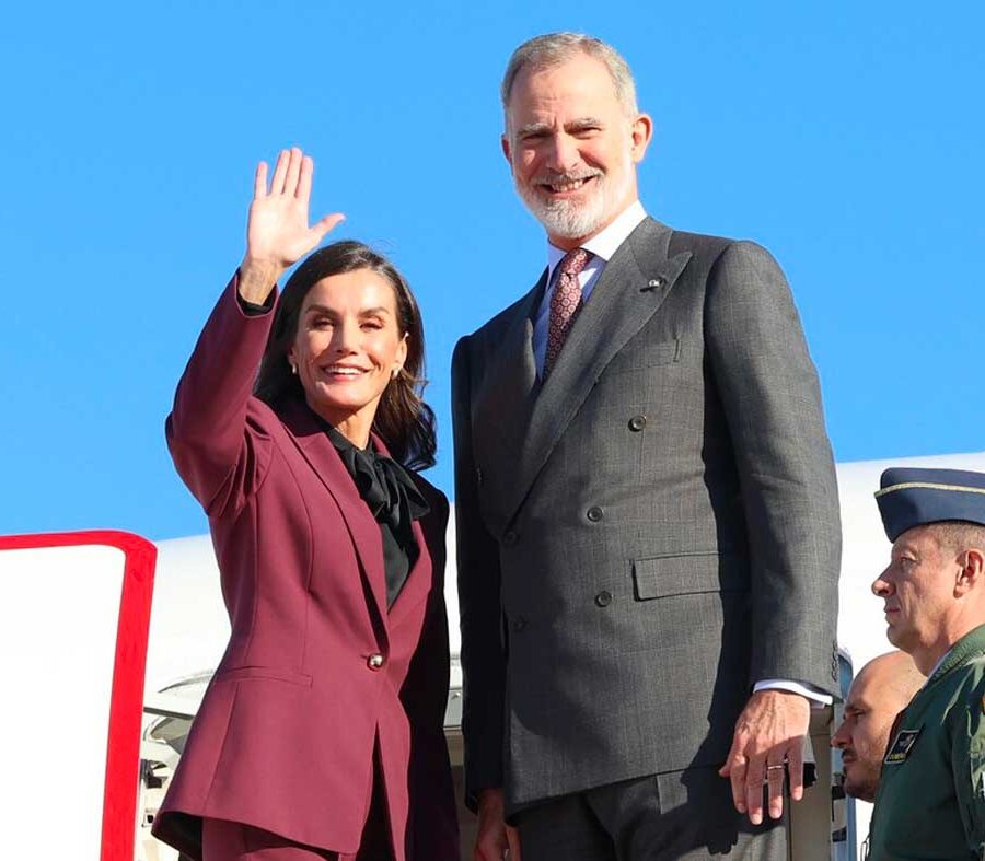 La reine Letizia porte un manteau orné de pivoines de Chine pour accompagner la première dame chinoise en visite
