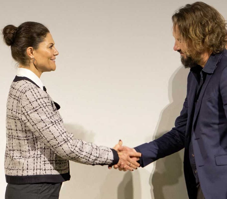 La princesse héritière Victoria dans une robe léopard à sequins pour remettre le prix Marcus Wallenberg