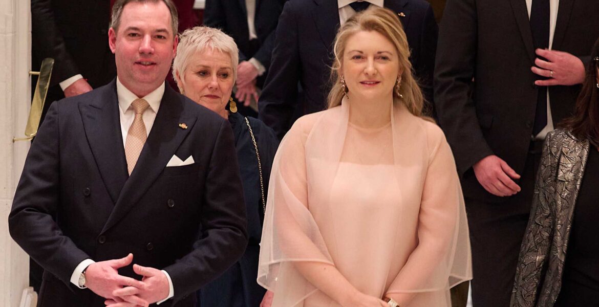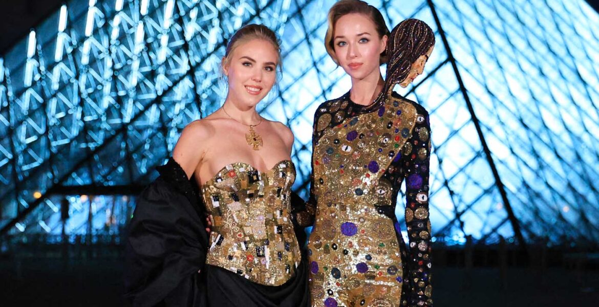Les princesses Maria Carolina et Maria Chiara en sculptures vivantes inspirées par Klimt au Grand dîner du Louvre