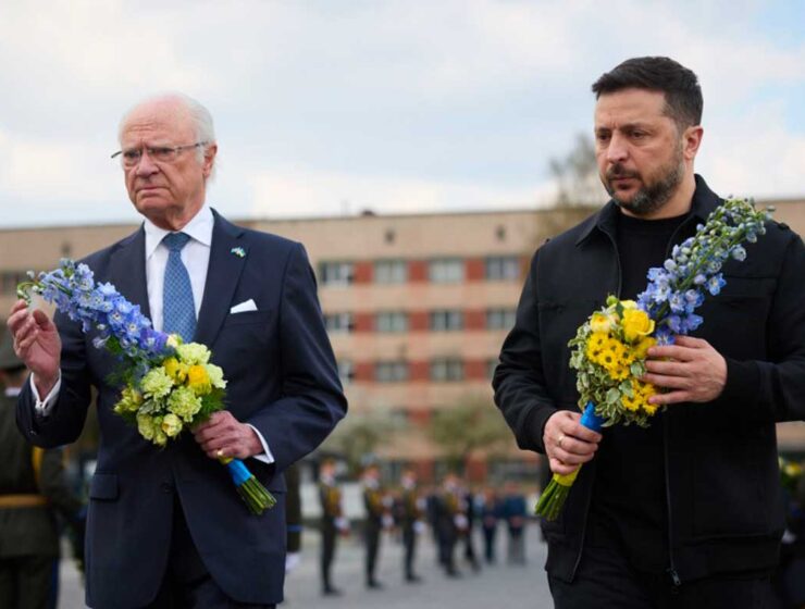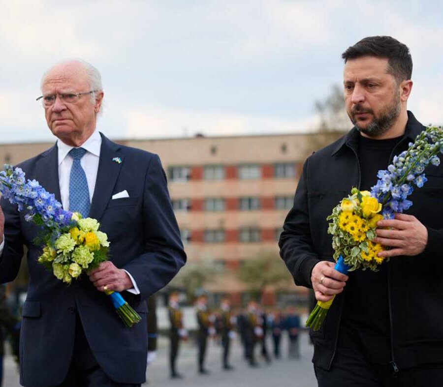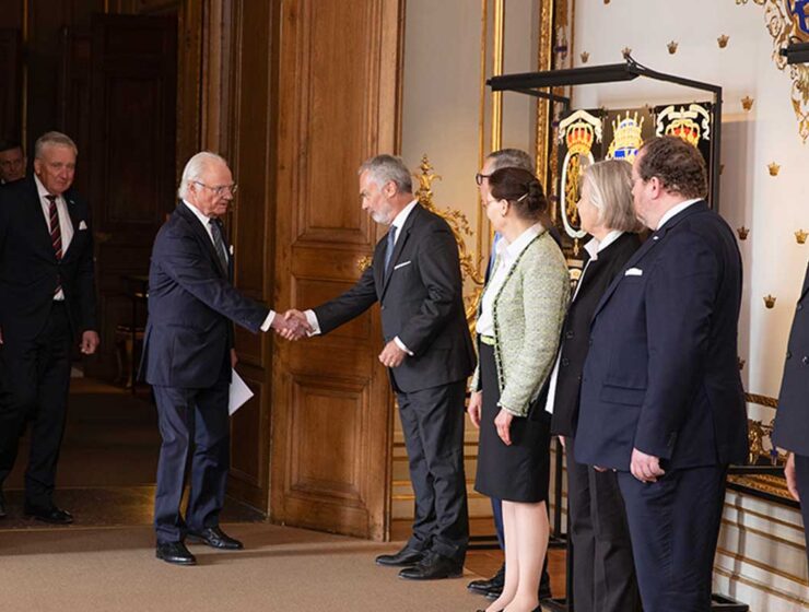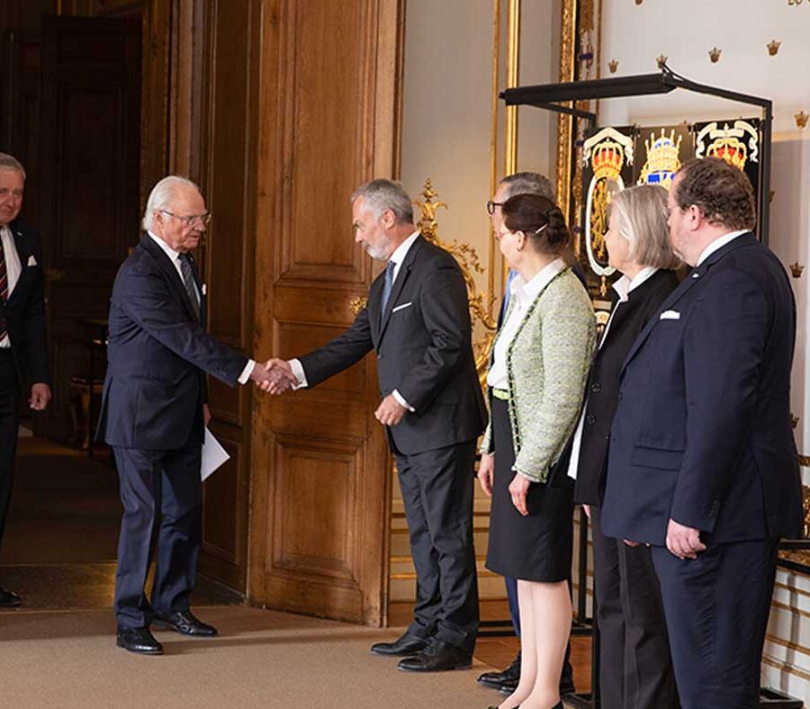 Les armoiries d’Emmanuel Macron et de la princesse Ines sont présentées au roi de Suède lors du chapitre des ordres