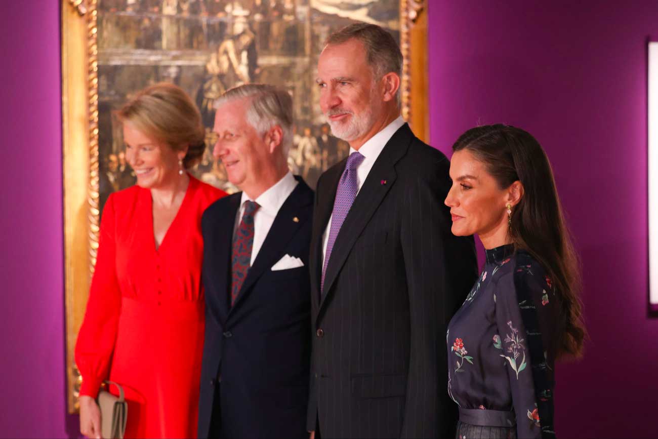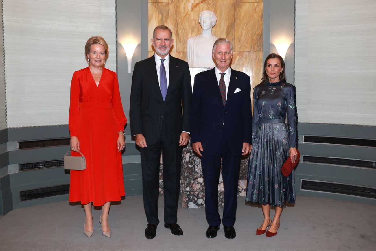 Le roi et la reine des Belges ont accueilli le roi et la reine d’Espagne au palais royal de Bruxelles. Les retrouvailles entre cousins royaux se sont déroulées au palais, où Philippe et Mathilde de Belgique ont pris le déjeuner en privé avec leurs invités espagnols. Après le déjeuner, les deux chefs d’État et les deux reines ont pris la direction de Bozar, l’un des bâtiments du palais des Beaux-Arts.