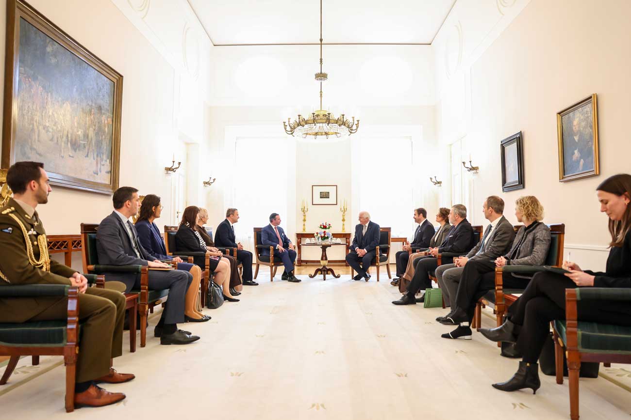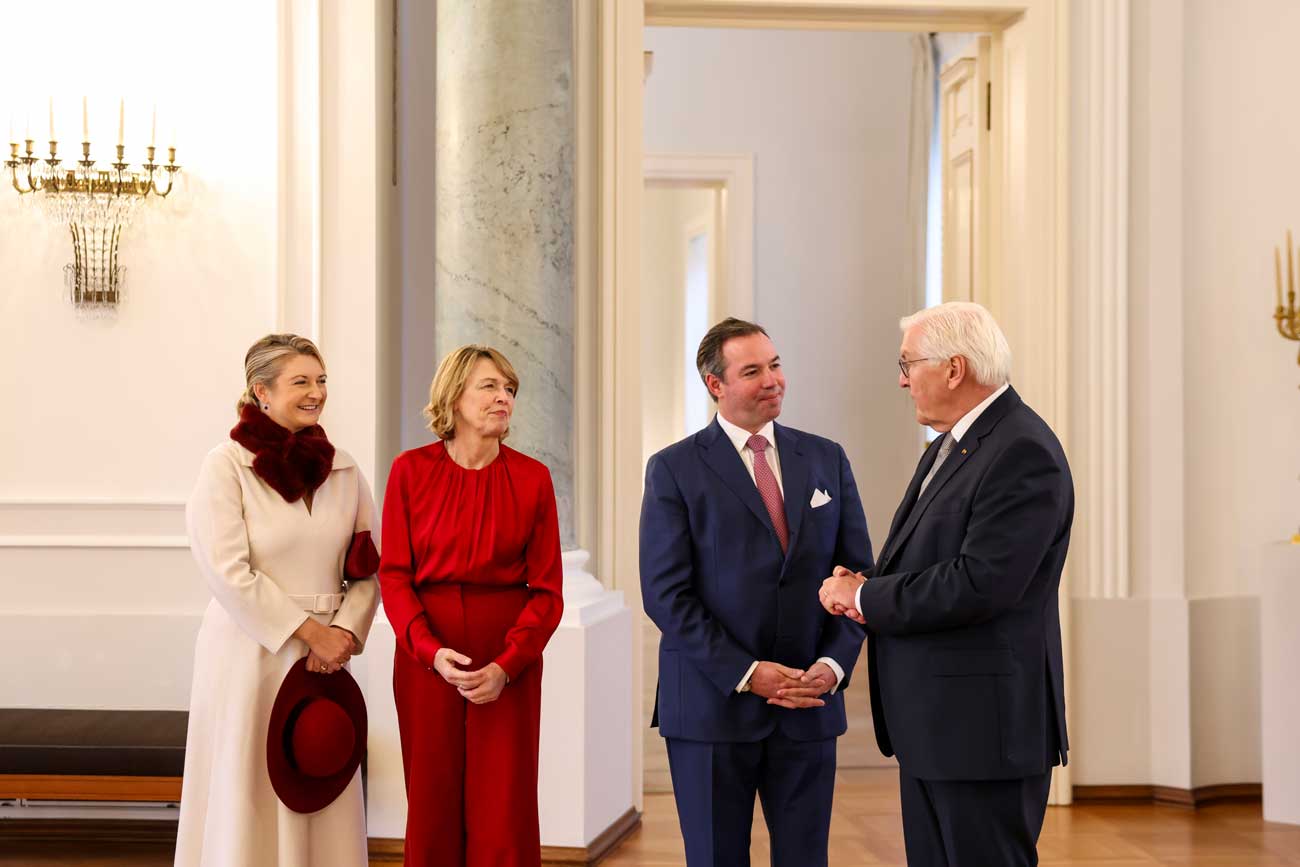 Frank-Walter Steinmeier et Elke Büdenbender accueillent Guillaume et Stéphanie de Luxembourg au château de Bellevue