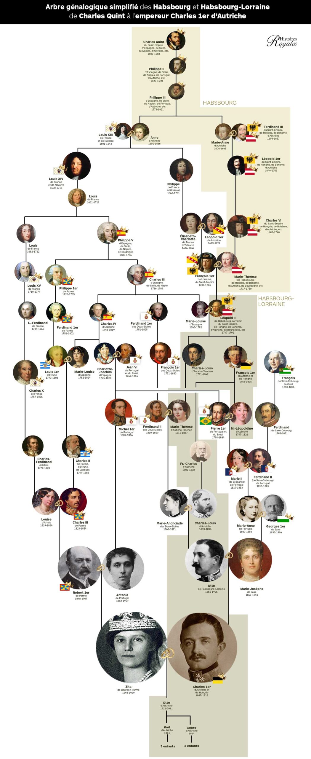 À partir de 1700 les Habsbourg perdent l’Espagne et leur influence se recentre sur l’Autriche et la péninsule italienne. En 1780, par le mariage de Marie-Thérèse d’Autriche et du duc de Lorraine, la famille prend le nom de Habsbourg-Lorraine. Les Habsbourg-Lorraine. En 1804, l’archiduché d’Autriche devient l’Empire d’Autriche. La famille n’a cessé d’avoir de l’influence, en possédant aussi le titre de roi de Hongrie, de Bohême ou encore de Croatie. Une branche de la famille régnait aussi en tant que ducs de Toscane. Après l’abolition de la monarchie, l’archiduc Otto a poursuivi à sa manière le travail de ses ancêtres, devenant l’une des grandes figures politiques de la construction européenne. Otto fut élu eurodéputé en 1979 et il a gardé son siège durant vingt ans. Il a longtemps été impliqué au sein de l’Union paneuropéenne internationale (UPI). Il a notamment présidé le comité francophone du Mouvement Pan-européen.