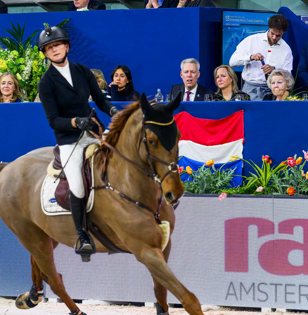 Durant quatre jours, du 23 au 26 janvier, des épreuves de dressage et de sauts ont lieu au parc des expositions RAI Amsterdam. Ce samedi 24 janvier, l’ancienne souveraine des Pays-Bas a assisté aux épreuves avec la princesse Margarita de Bourbon-Parme, l’une des filles de sa sœur, la princesse Irene.