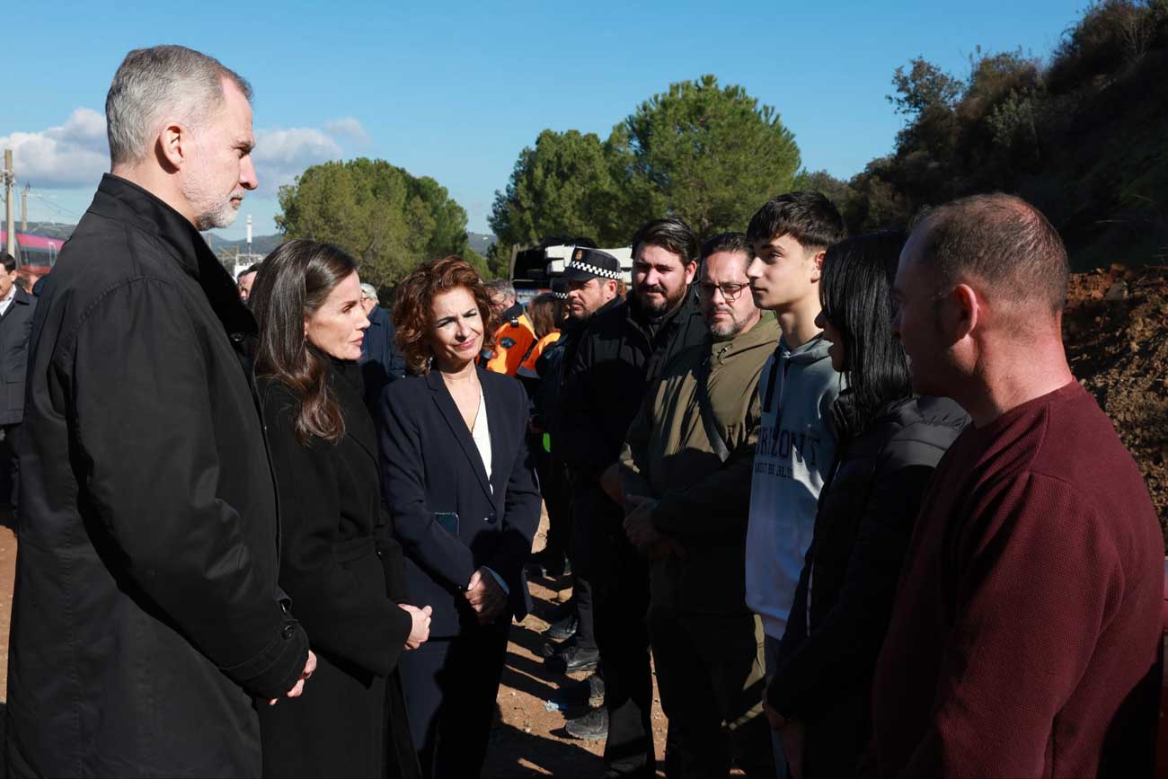 Un train circulant entre Malaga et Atocha a déraillé en premier, et quelques secondes plus tard, un second train circulant à environ 200 kilomètres par heure sur la ligne Madrid-Huelva adjacente, est entré en collision avec le train sorti de ses rails, qui bloquait la voie opposée. Le roi Felipe VI et la reine Letizia ont mis les pieds sur le lieu de la collision et ont observé la carcasse du train rouge allongée sur son flanc. Les souverains étaient accompagnés de la première vice-présidente du gouvernement et ministre des Finances, María Jesús Montero.