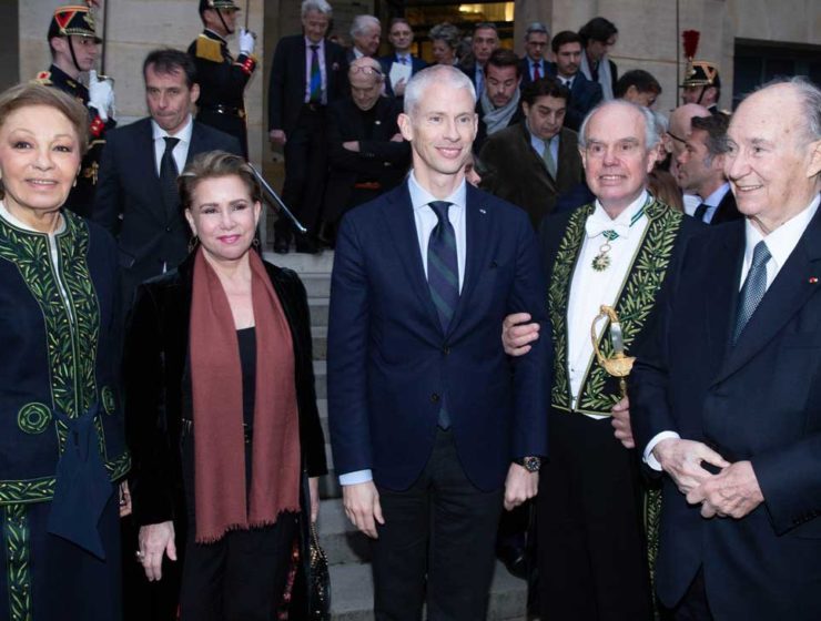 L’impératrice Farah, la grande-duchesse Maria Teresa et l’Aga Khan à l’installation de Frédéric Mitterrand à l’Académie des Beaux-Arts