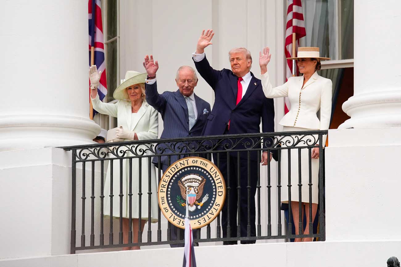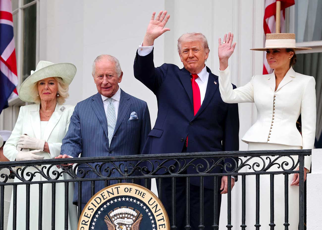 Après la cérémonie d’accueil sur la pelouse, Donald et Melania Trump ont guidé leurs invités royaux jusqu’au Salon bleu de la Maison-Blanche. Le couple royal et le couple présidentiel ont ensuite fait une apparition au balcon Truman. Les apparitions au balcon sont habituellement l’apanage des souverains et de leurs familles mais certaines républiques ont adopté cette tradition. Ces apparitions ont traditionnellement lieu lors des célébrations de la fête nationale ou lors de grands événements monarchiques, comme l’accession au trône, l’anniversaire du souverain, des fiançailles ou des mariages royaux.
