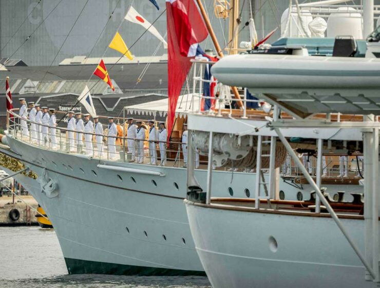 Le roi Harald et la reine Sonja visitent le Danemark, utilisant leur navire royal pour…