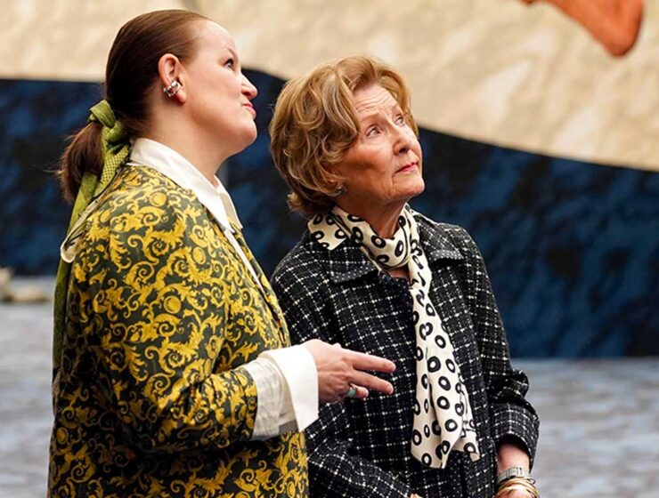 La reine Sonja, passionnée d’art contemporain, visite annuellement le Festival international de Bergen, qui consacre…