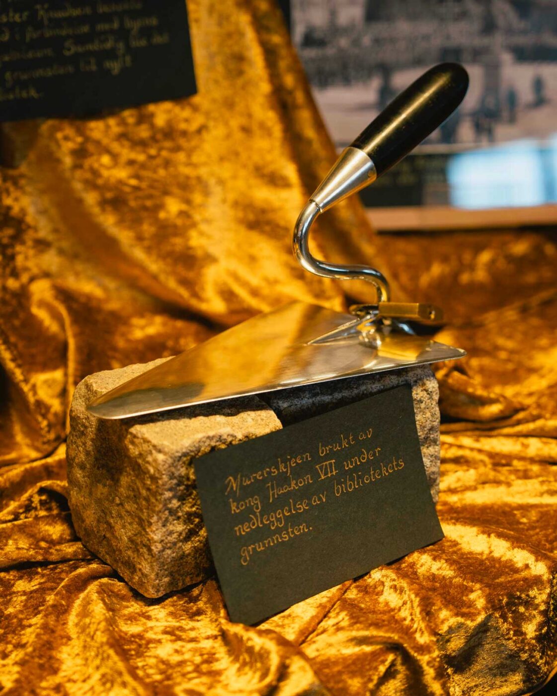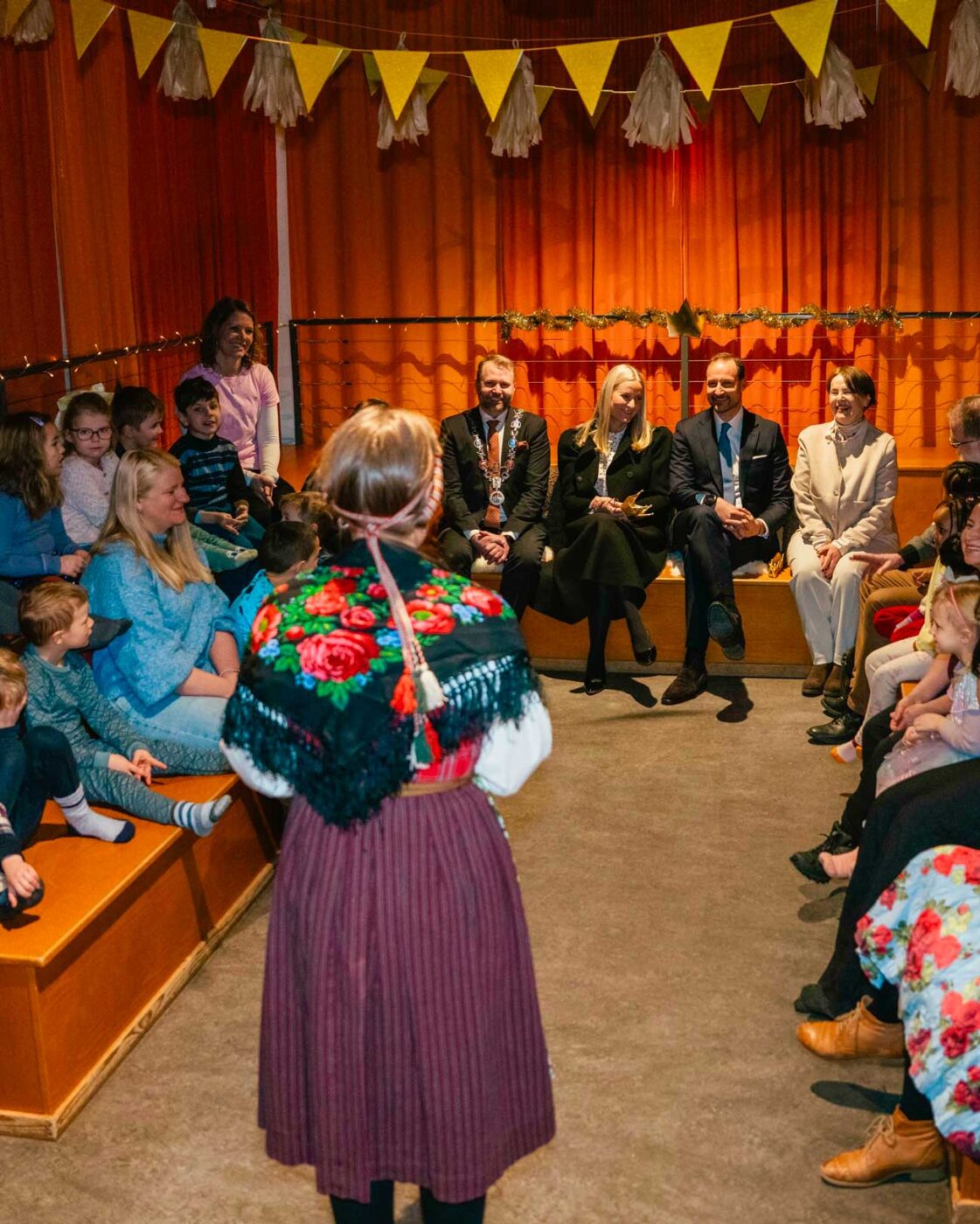 Dans la section enfant, le prince héritier Haakon et la princesse héritière Mette-Marit ont retrouvé des enfants qui visitaient la bibliothèque avec leur école. Tous ensemble, ils ont lu des extraits d’un livre. Le prince héritier Haakon a également vu la truelle exposée à la bibliothèque, qui avait été utilisée par son aïeul pour appliquer le ciment sous la première pierre.