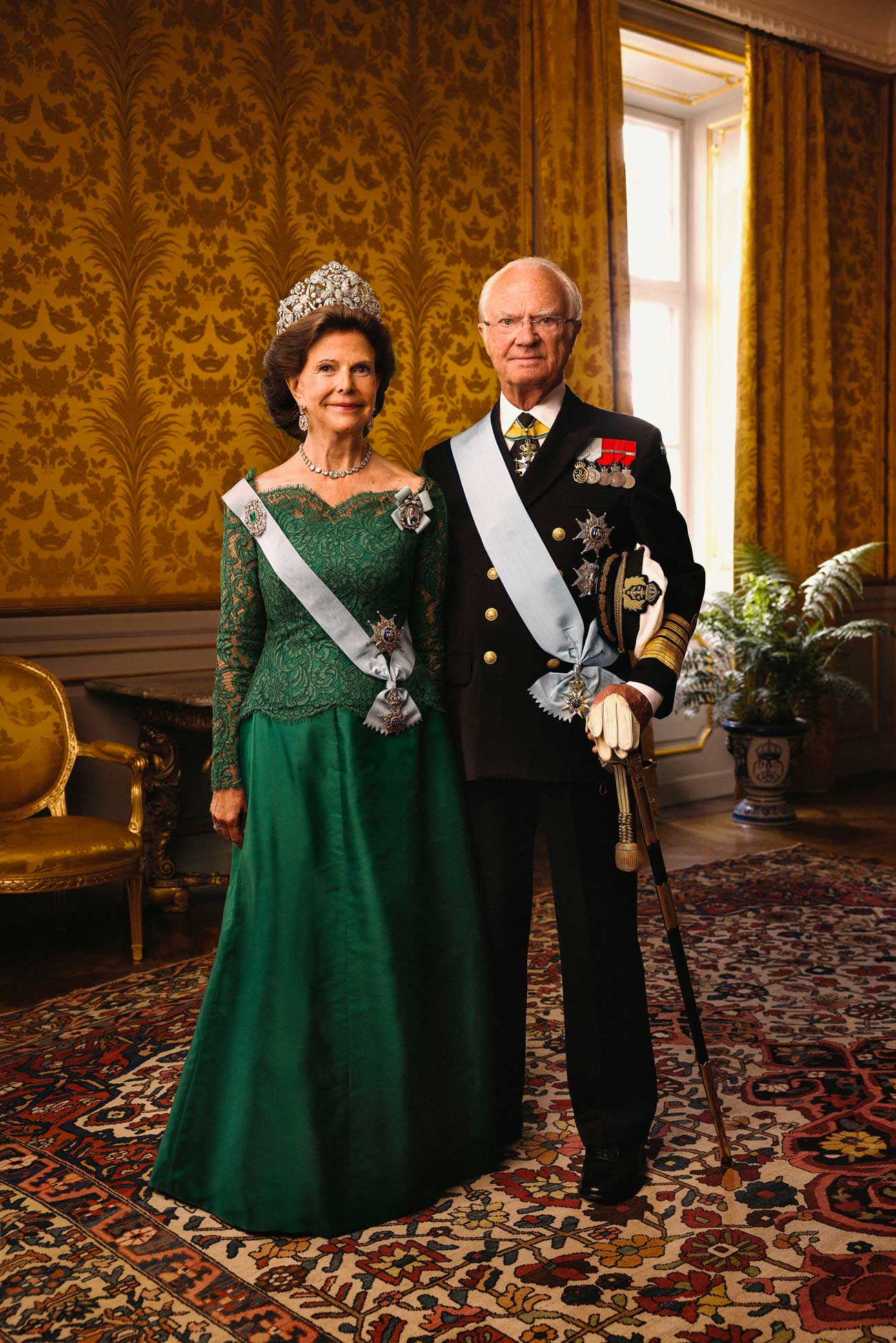 Die neuen Porträts des Königs und der Königin werden zur Illustration aller offiziellen Mitteilungen im Zusammenhang mit diesen Ereignissen verwendet. Sie können auch als Ersatz für die bisherigen Porträts dienen, die in Botschaften, Verwaltungsgebäuden und anderen institutionellen Gebäuden ausgestellt sind. König Carl XVI. Gustaf trägt seine Admiralsuniform und seine Auszeichnungen. Zu seinen Auszeichnungen gehören das blaue Band des Seraphinenordens, das er als Schulterband trägt, sowie das Sternabzeichen dieses Ordens. Außerdem trägt er um den Hals das Abzeichen des Schwertordens und an der Hüfte das Sternabzeichen des Vasa-Ordens.
