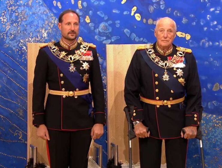 Kinder und Schwiegertochter: Kronprinz Haakon und seine Frau Kronprinzessin Mette-Marit, Prinzessin Märtha Louise.