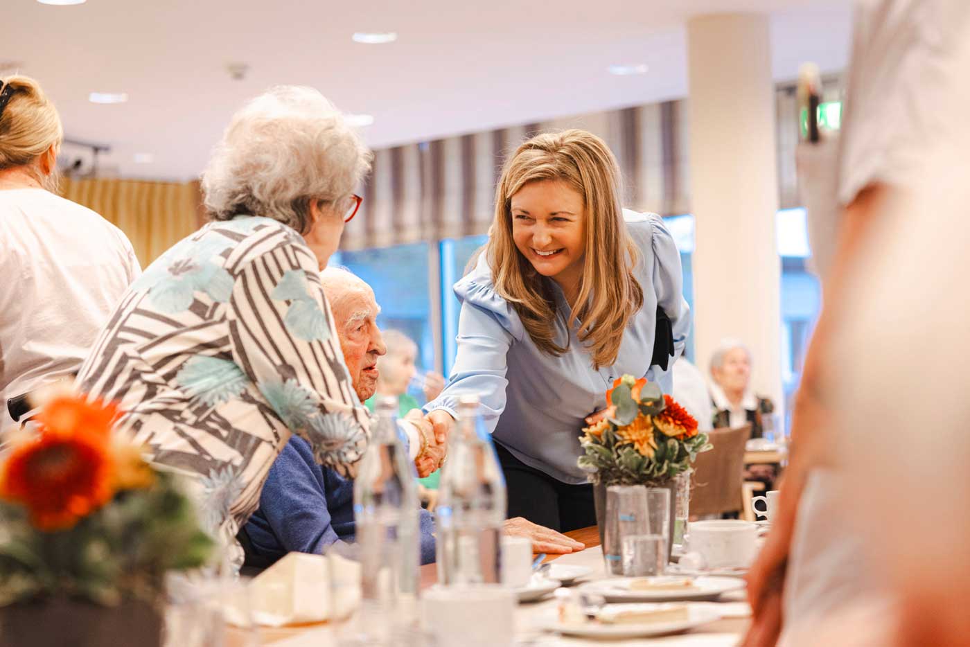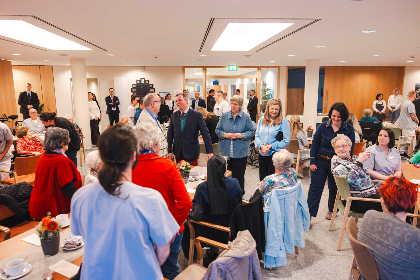 Großherzog Guillaume und Großherzogin Stéphanie erhielten eine Präsentation der verschiedenen Dienstleistungen, die von der Einrichtung angeboten werden. La Maison du Grand-Duc fügt hinzu, dass das Oberhaupt und seine Gattin „die Professionalität und das tägliche Engagement der Mitarbeiter lobten, die jeden Tag dazu beitragen, den rund 200 Bewohnern der Einrichtung ein angenehmes und würdiges Lebensumfeld zu bieten”.