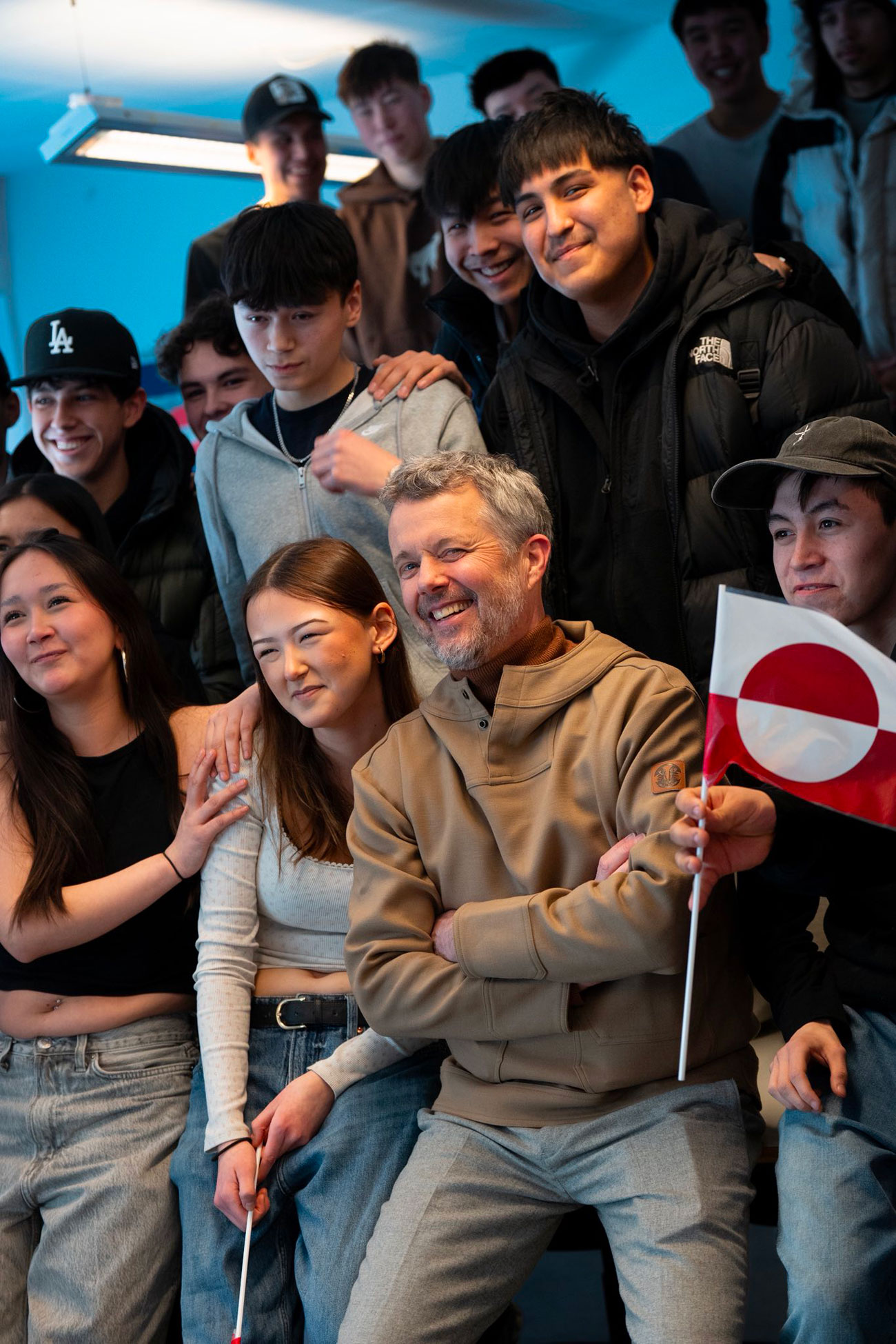 König Frederik posiert mit grönländischen Gymnasiasten (Foto: Kongehuset)