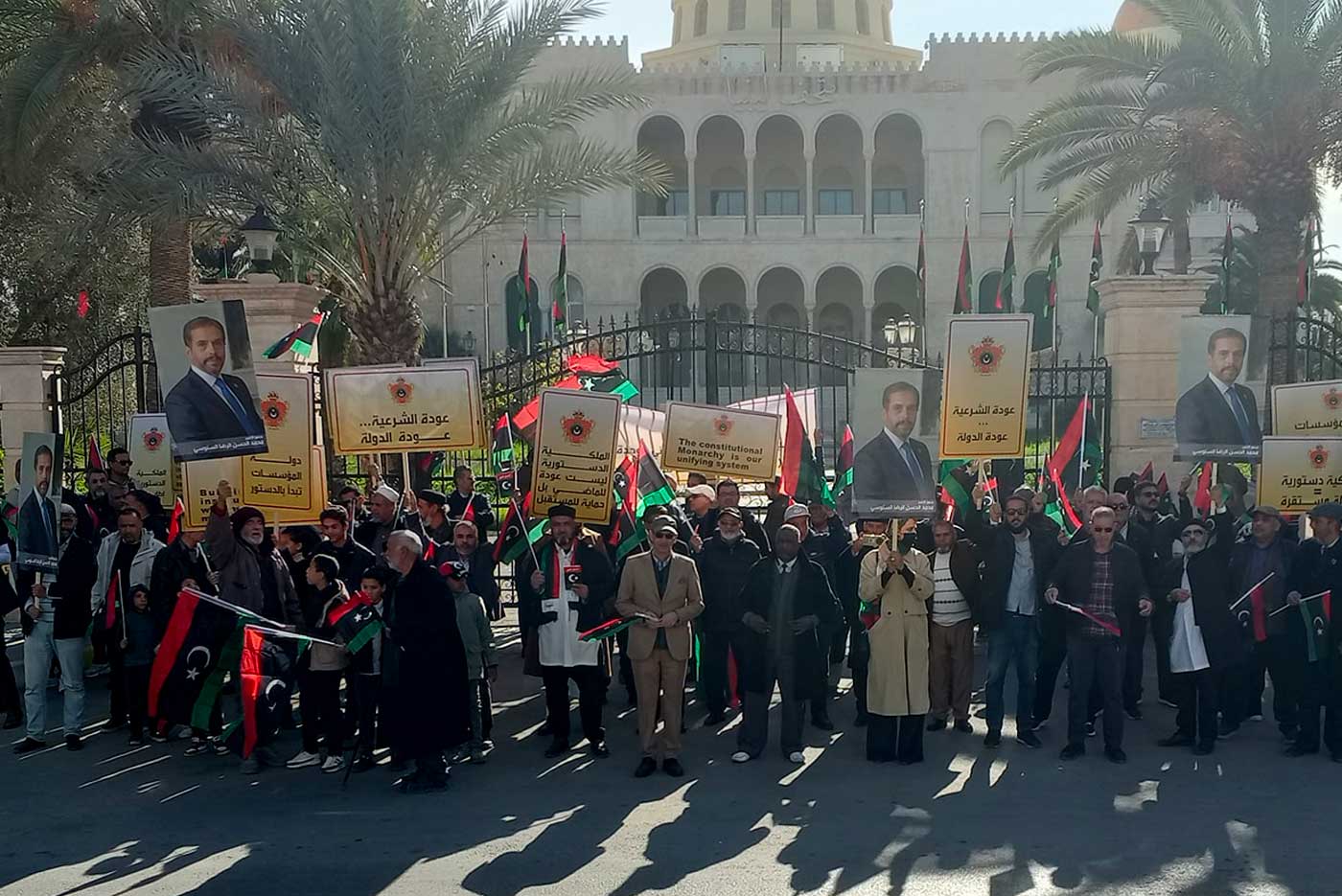 Am 3. Januar 2026 versammelte sich eine Gruppe junger Menschen, bestehend aus Mitgliedern der Zivilgesellschaft und Vereinen, auf den Straßen von Tripolis, um der Aufforderung des Prinzen nachzukommen, sich zu versammeln. Die Gruppe versammelte sich auf dem Algerienplatz und zog durch die Hauptstadt in Richtung des Al-Khald-Palasts, der heute in ein Museum umgewandelt wurde. The Libya Observer berichtet, dass die Demonstranten mit Plakaten mit der Aufschrift „Das libysche Königreich… Unser Weg in die Zukunft”. Die Teilnehmer bekundeten ihre Zustimmung zur Unabhängigkeitsverfassung von 1951. Sie sind der festen Überzeugung, dass die konstitutionelle Monarchie der notwendige Rahmen ist, um die Einheit in Libyen wiederherzustellen.