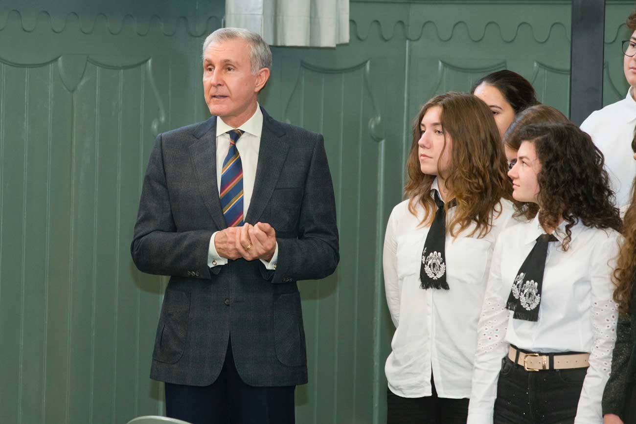 Das Königspaar hörte sich die Geschichte der Schule an und traf anschließend die Schüler. Bei ihrem Besuch in einer Klasse sahen Margareta und Radu eine Darbietung des Chors und ein Barockflötenkonzert. Dieses traditionelle Instrument wurde wieder in den Lehrplan des Religionszweigs aufgenommen. Margareta und Radu hielten eine Rede im Hörsaal, bevor sie ihren Besuch im Labor der Einrichtung fortsetzten.