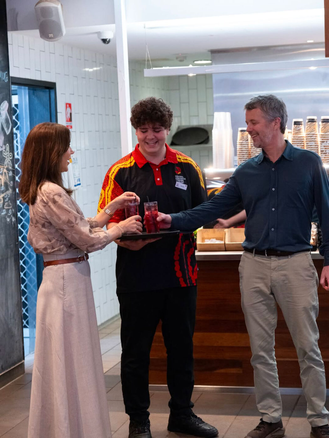 Le roi Frederik X et la reine Mary ont visité le Kulata Academy Café, où ils ont eu l’occasion de rencontrer des étudiants qui gèrent ce café dans le cadre de leur formation. Les souverains se sont renseignés sur le programme d’apprentissage NITA, qui a été mis en place parle gouvernement australien. Le programme propose des stages et des formations rémunérés dans les domaines du tourisme et de l’hôtellerie aux jeunes issus des peuples autochtones.