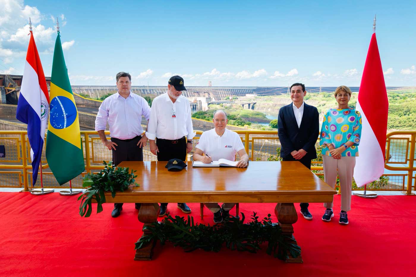 Signature du livre d’honneur au barrage d’Itaipú (Photo : Michaël Alesi/Palais princier)