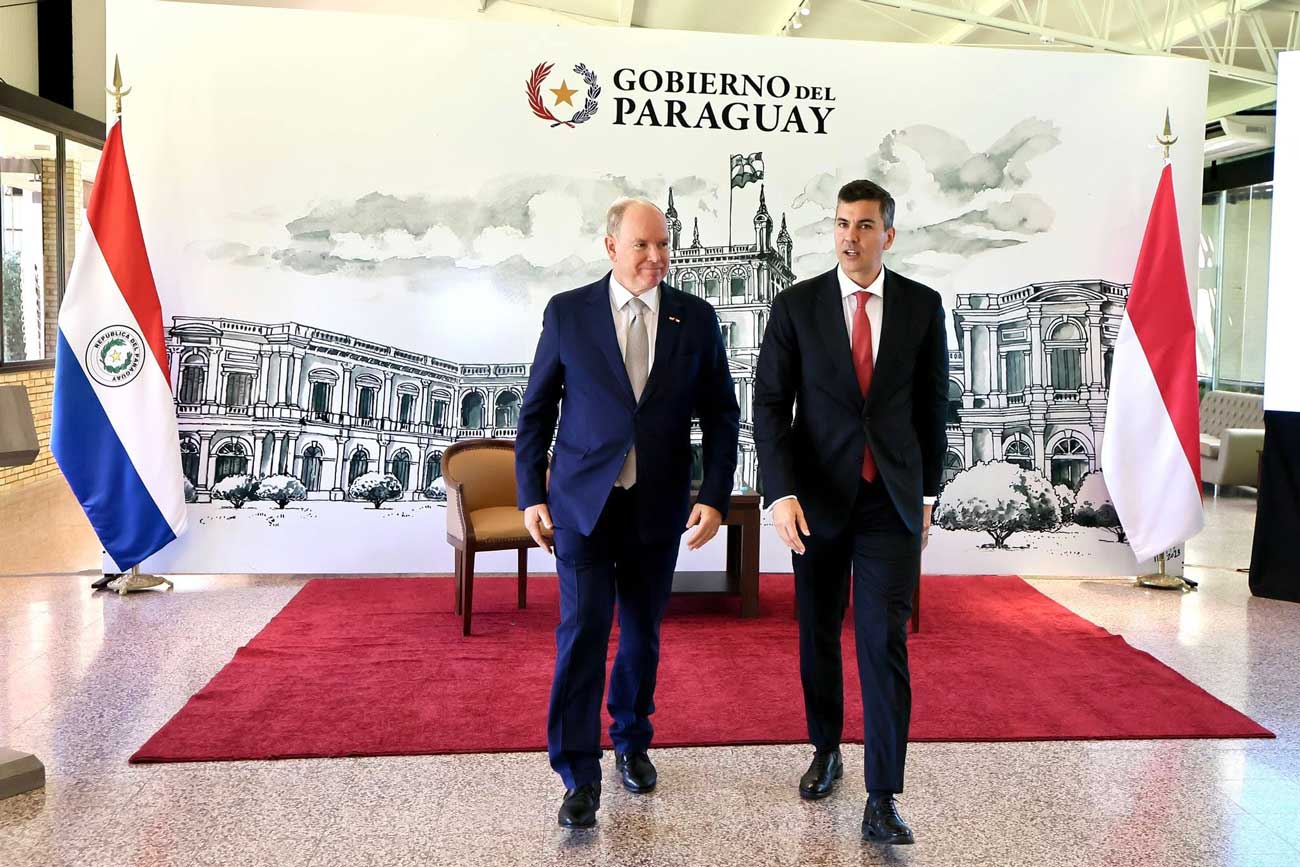 Le prince Albert II de Monaco et le président paraguayen Santiago Peña ce 4 novembre 2025 (Photo : Michaël Alesi/Palais princier)