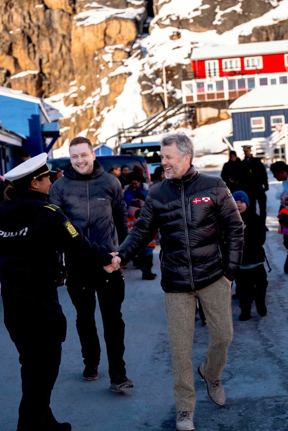 Ce 19 février, le roi Frederik X est arrivé en hélicoptère à Maniitsoq, accompagné du Premier ministre groenlandais Jens Frederik Nielsen. Frederik a été accueilli par Gideon Lyberth, adjoint au maire de la commune de Qeqqata. Le Groenland compte plus de 56 000 habitants, vivant principalement au sud du territoire. Le Groenland est divisé administrativement en cinq communes ainsi qu’un territoire au nord-est qui est un parc naturel. Maniitsoq est une ville de 2 520 habitants, située dans la commune de Qeqqata, au nord de Nuuk.