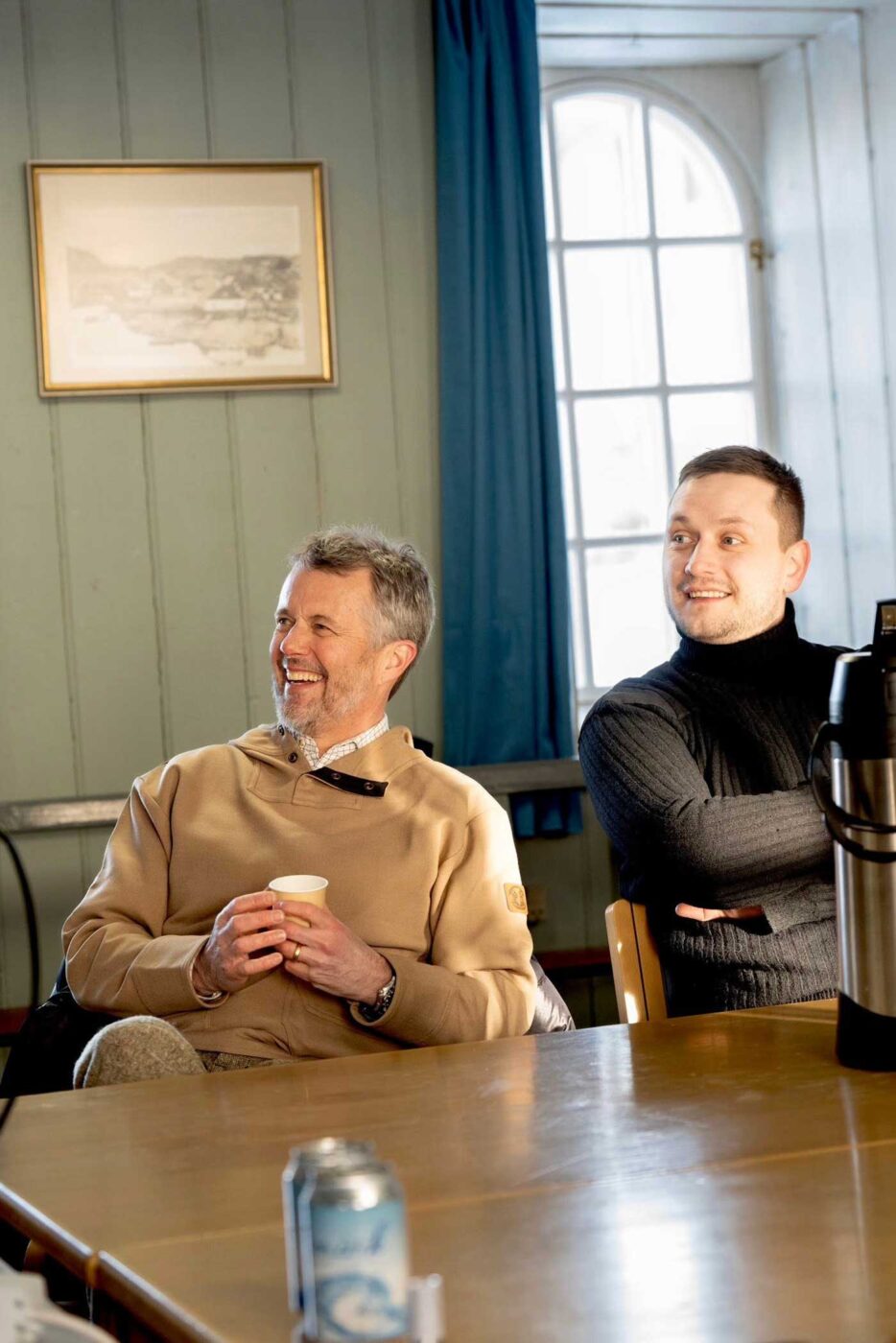Après sa promenade, le roi Frederik a pris un café avec la population de Maniitsoq, dans la salle communale. En fin d’après-midi, le roi Frederik a repris l’hélicoptère et a atterri à Kangerlussuaq. Cette localité d’environ 530 habitants est située au nord de la commune de Qeqqata. Sur place, il a notamment rencontré des militaires.