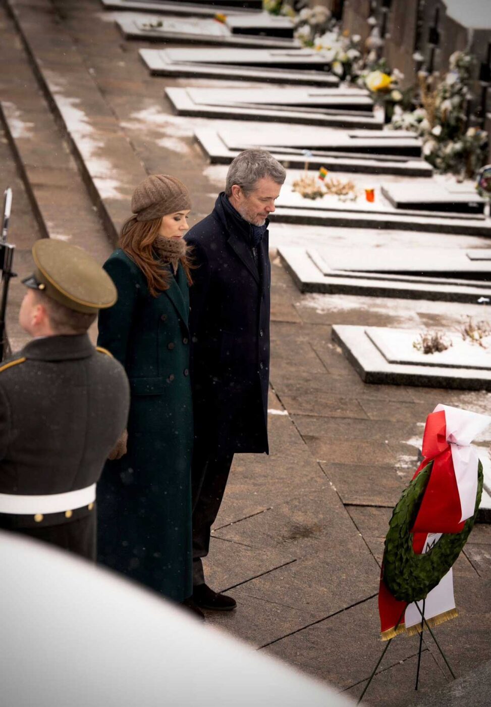 Habituellement, les chefs d’État commencent toujours les visites d’État par une cérémonie de recueillement dans un lieu symbolique de la capitale. En raison du planning particulier de cette visite d’État, le moment de recueillement s’est déroulé dans la deuxième journée. Le roi Frederik X et la reine Mary ont déposé une couronne de lauriers au cimetière d’Antakalnis. C’est ici qu’est érigé le monument dédié aux personnes tombées lors des luttes pour l’indépendance de la Lituanie.