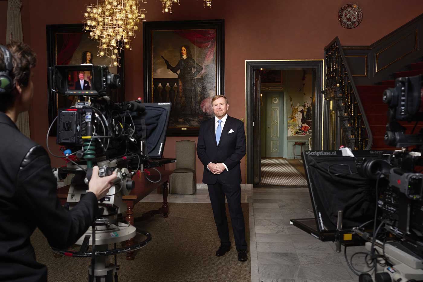 Le roi Willem-Alexander prononce son discours depuis le vestibule du palais Huis ten Bosch