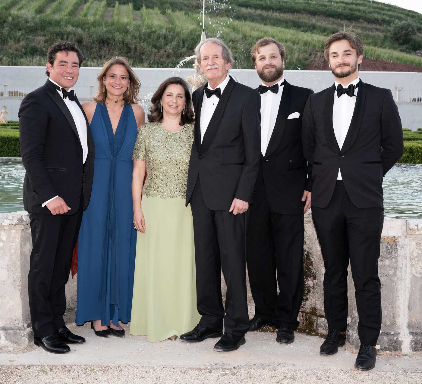 Photo d’archive du duc et de la duchesse de Bragance avec leurs trois enfants et leur beau-fils en mai 2025. Duarte de Sousa Araújo Martins, l’infante Maria Francisca, duchesse de Coimbra, Duarte et Isabelle, duc et duchesse de Bragance, l’infant Afonso, prince de Beira et duc de Barcelos, et l’infant Dinis, duc de Porto (Photo : David Nivière)