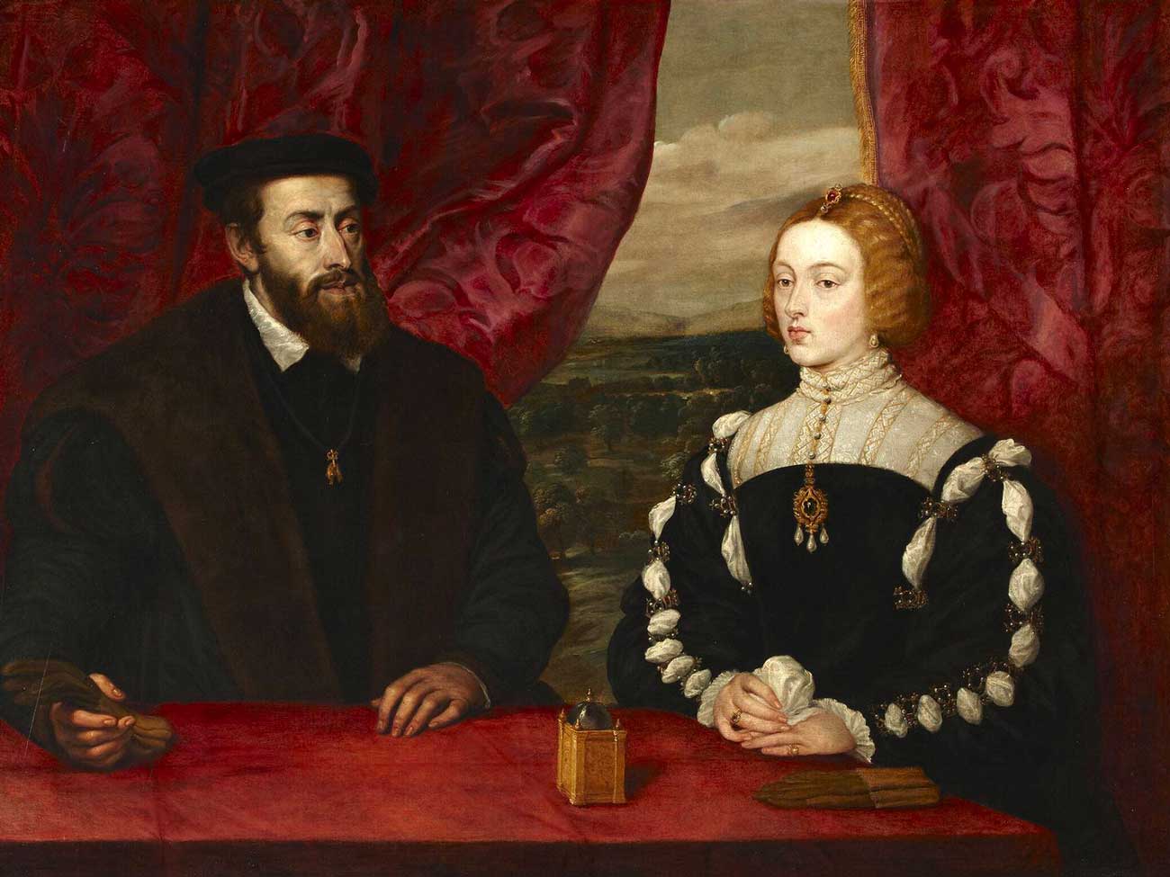 Ce tableau restauré du 3e duc d’Albe et son épouse est inspiré d’un tableau de Charles Quint et Isabelle de Portugal