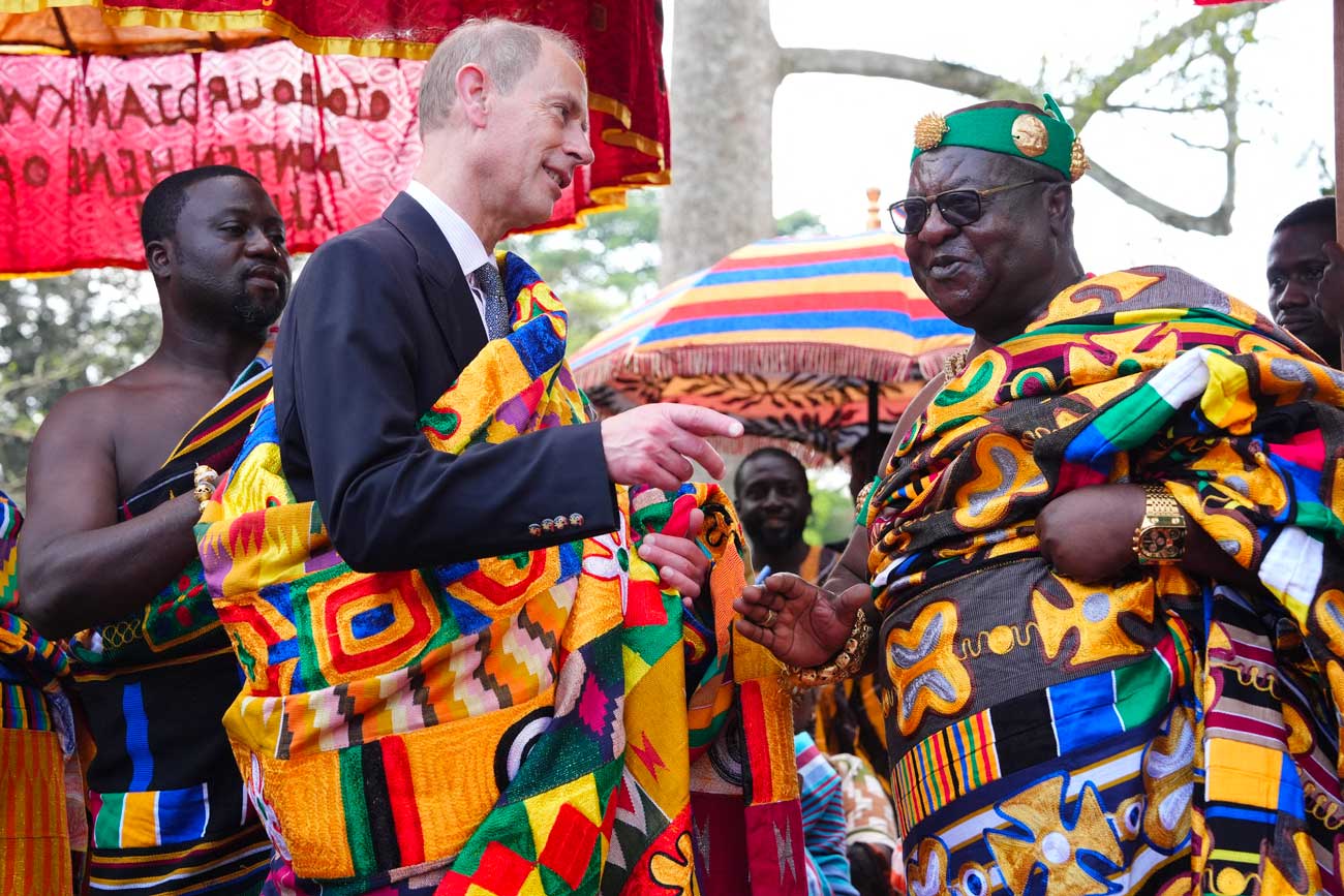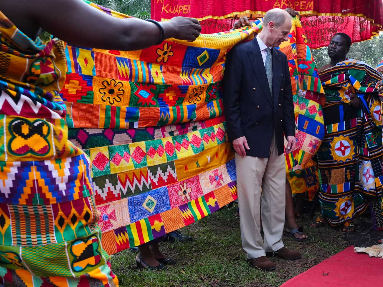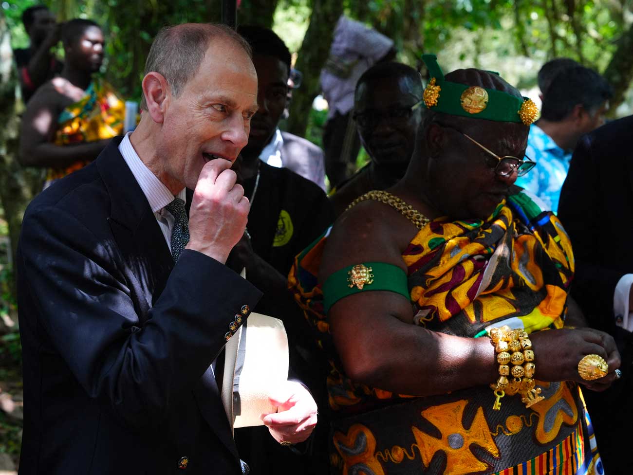 Le prince Edward a effectué plusieurs visites en lien avec l’éducation, l’accès à la santé, le développement économique et la coopération. Le duc d’Édimbourg a notamment visité le plus ancien établissement de formation d’enseignants au Ghana, puis il s’est rendu aux jardins botaniques d’Aburi. Il y a rencontré Otoobour Nana Gyan Kwasi II, le roi traditionnel d’Aburi, qui lui a remis une tenue traditionnelle ghanéenne.