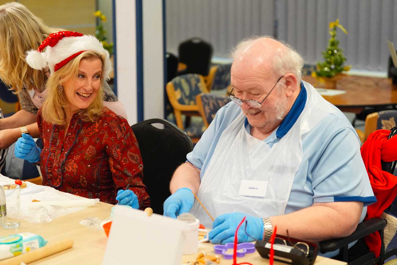 Lors de cette visite, la duchesse d’Édimbourg s’est assise à table avec plusieurs bénéficiaires de l’association, qui participaient à un atelier de bricolage et à un atelier de décoration de biscuits. Devant elle, la belle-sœur du roi Charles III avait une pancarte qui indiquait « SAR notre magnifique marraine ».