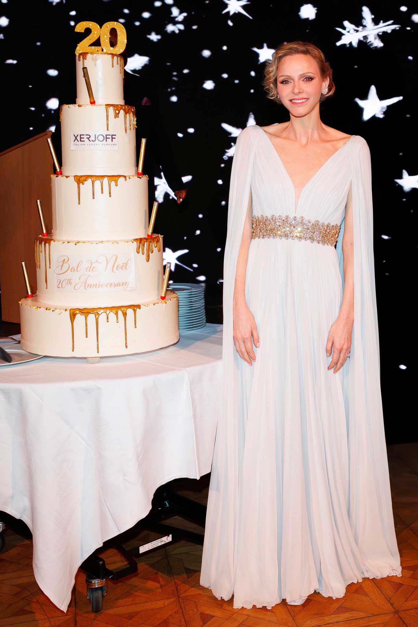 La princesse Charlène dans une robe Jenny Packham à son Bal de Noël