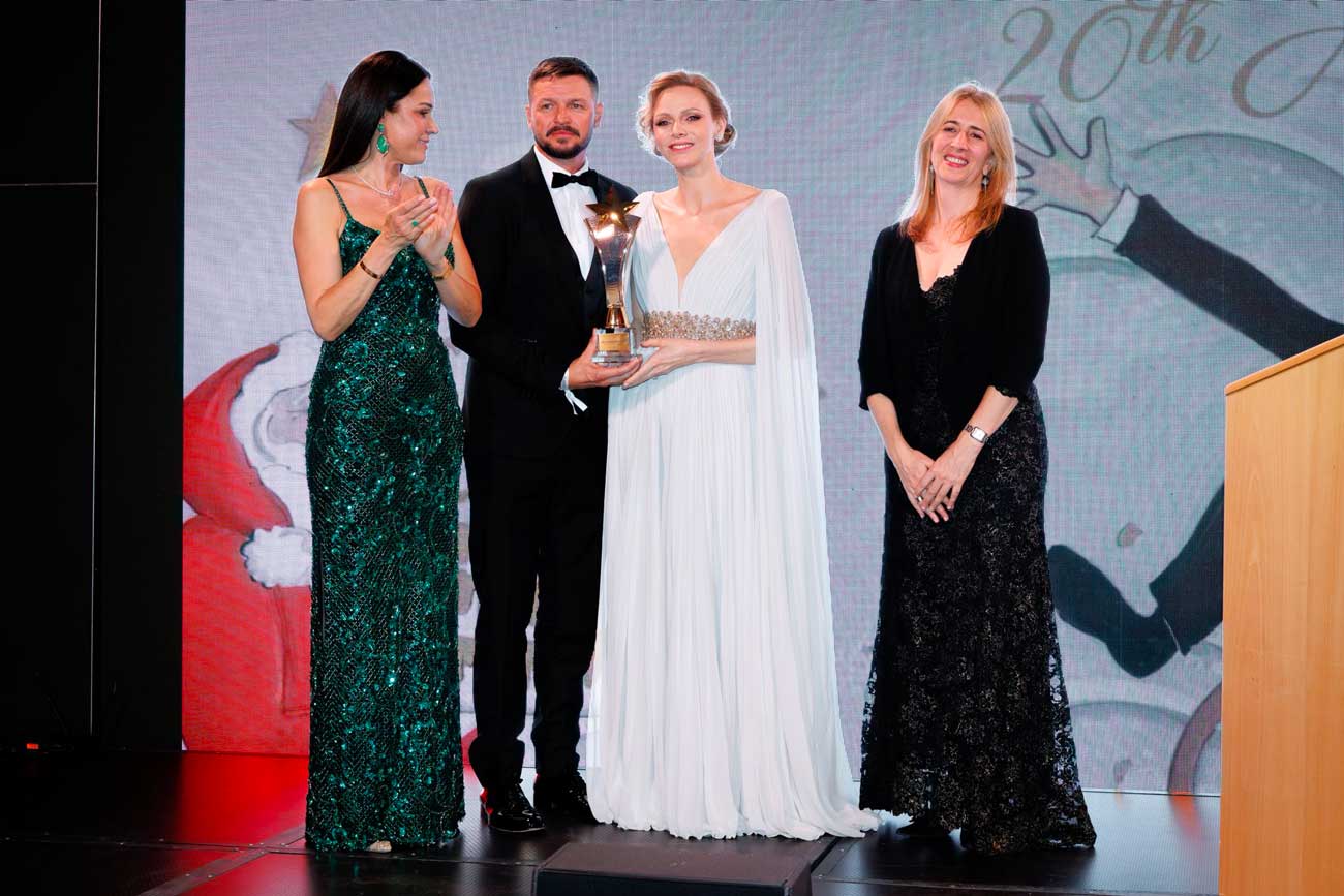 La princesse Charlène a été personnellement mise en avant lors de la soirée, étant en plus distinguée du prix Monaco Star. Sandrine Knoell, fondatrice de ce bal de Noël, a remis la distinction à l’épouse du chef d’État pour « saluer son engagement au service de l’enfance à travers sa Fondation ». Il s’agit du premier prix que remet le comité organisateur du bal. Les prix seront dorénavant remis pour distinguer des personnalités ayant œuvré au bien-être des jeunes.