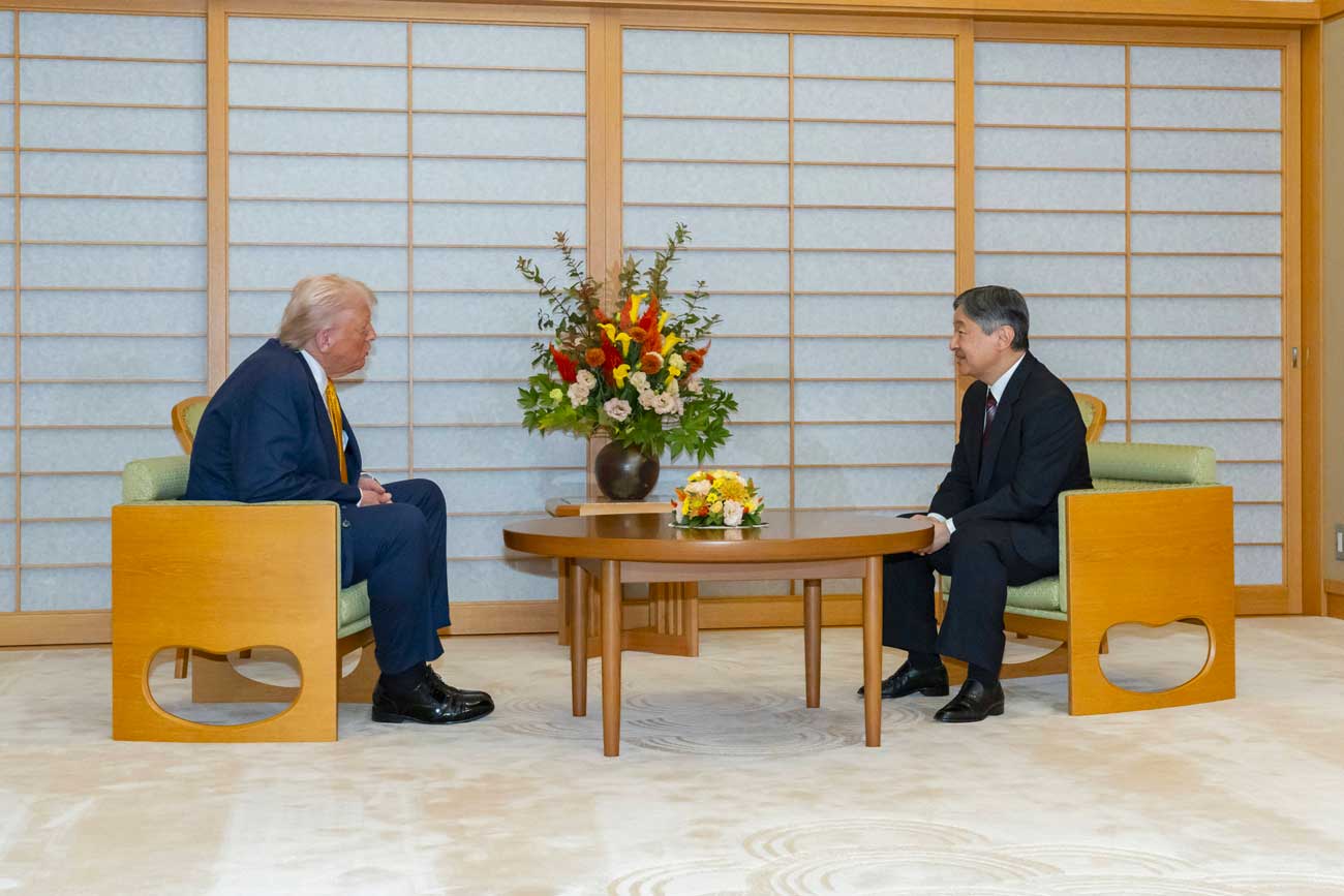 L’empereur Naruhito du Japon, 65 ans, a pour habitude de recevoir au palais impérial tous les chefs d’État en visite dans son pays. Ce lundi 27 octobre 2025, le président américain Donald Trump est arrivé au Japon, dans le cadre de sa tournée asiatique. Le chef d’État nippon a reçu son homologue américain sur son lieu de travail.
