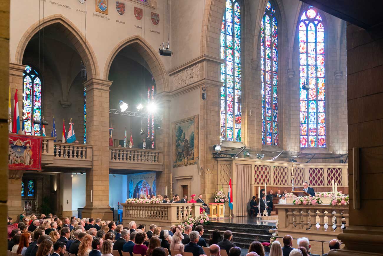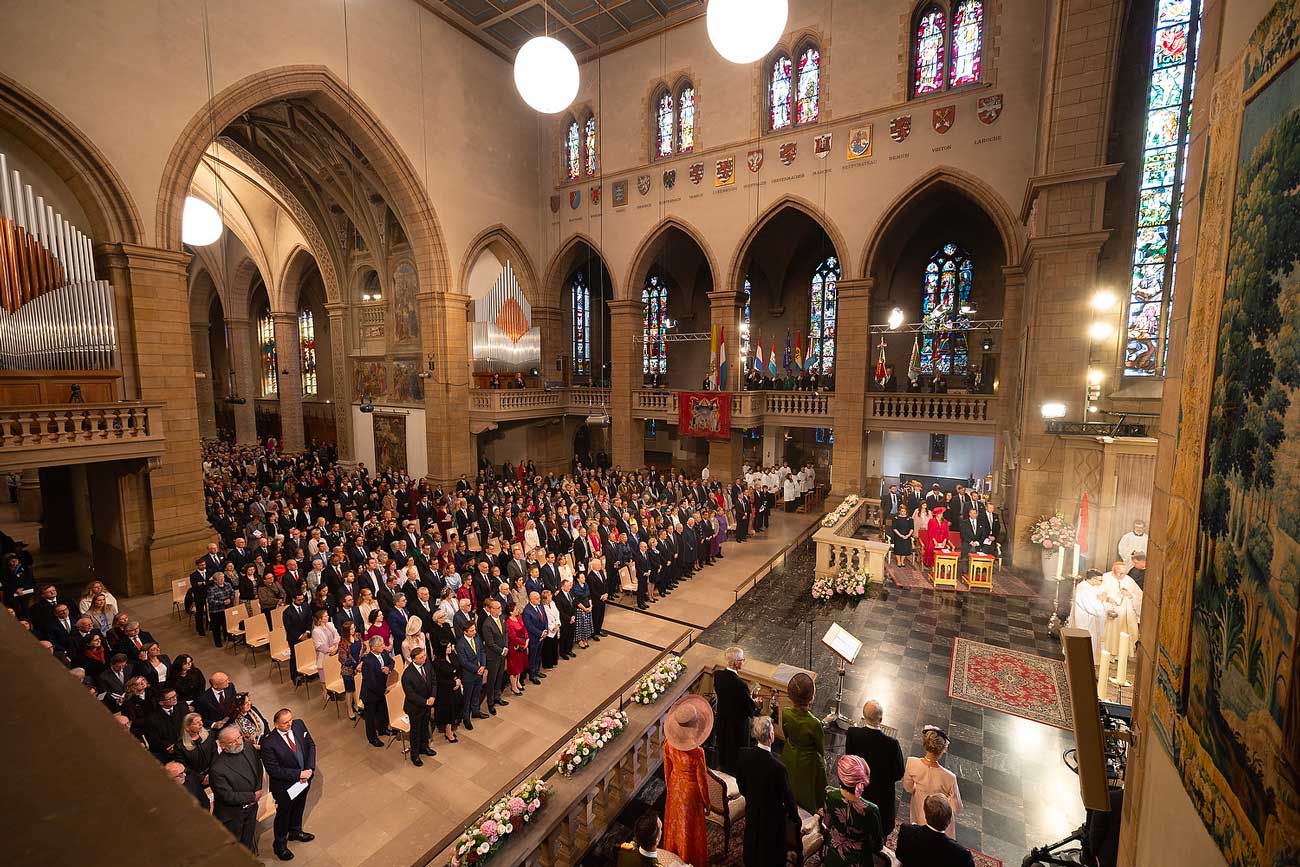 La messe était accompagnée d’un Te Deum, soit une célébration chantée. Le Te Deum consiste en des louanges chantées, cette fois-ci en l’honneur du nouveau règne et du nouveau souverain. La messe était célébrée par le cardinal Jean-Claude Hollerich, archevêque de Luxembourg. Étaient également présents plusieurs prélats, dont certains ont assisté l’archevêque de Luxembourg.