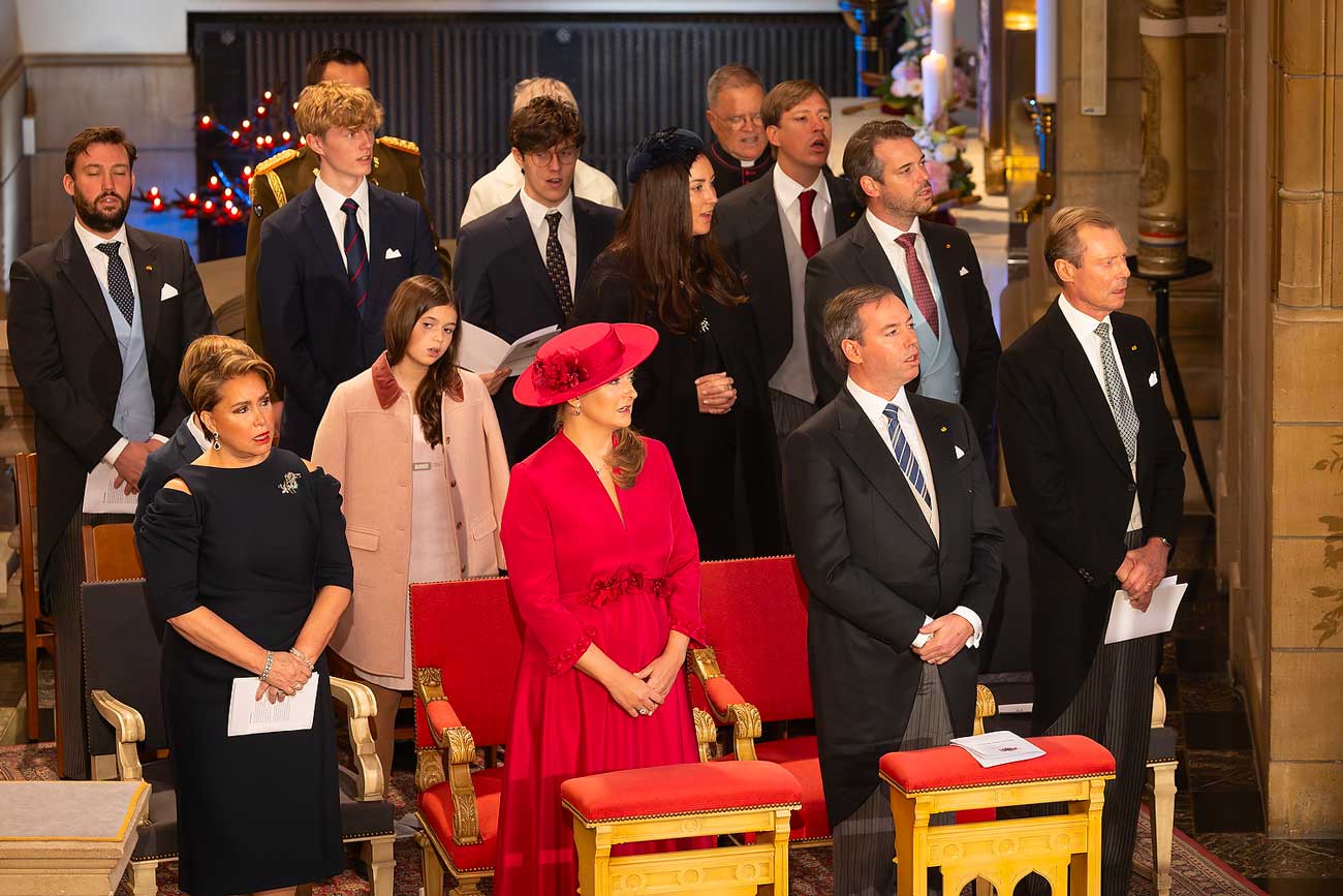 La famille grand-ducale était réunie au complet ce dimanche pour célébrer un Te Deum en l’honneur du nouveau grand-duc Guillaume, à la cathédrale Notre-Dame de Luxembourg. Le grand-duc Guillaume et la grande-duchesse Stéphanie, le grand-duc Henri et la grande-duchesse Maria Teresa, ainsi que la fratrie de Guillaume et la fratrie d’Henri ont assisté à ce dernier acte officiel qui conclut les célébrations de changement de trône.