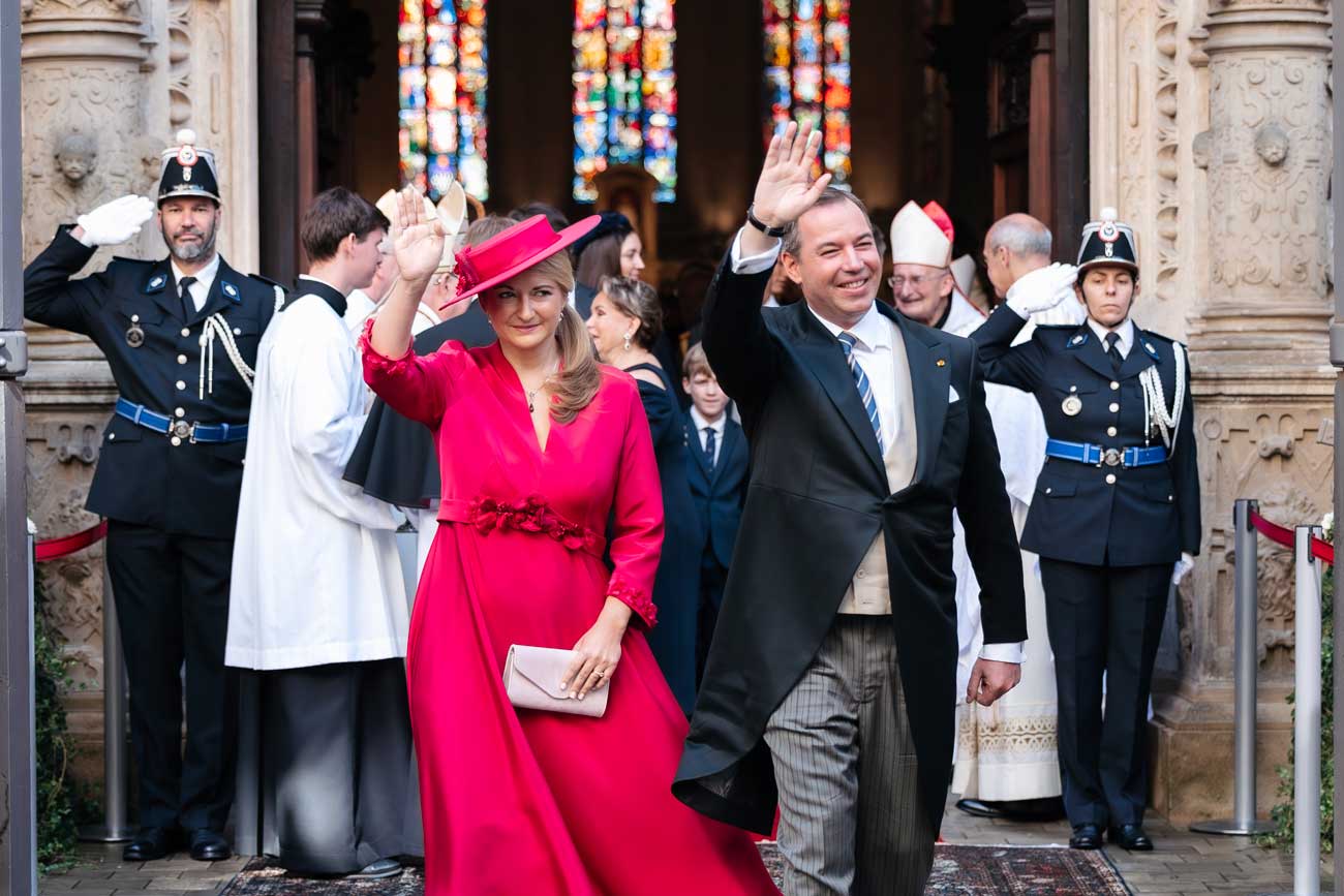Après la cérémonie, la famille grand-ducale a salué la population amassée devant l’entrée de la cathédrale, édifice construit au début du 17e siècle. Cette ancienne église a été élevée au rang de cathédrale en 1870, devenant le siège du diocèse puis de l’archidiocèse de Luxembourg. Sous cette cathédrale se trouve la crypte dans laquelle reposent les évêques de Luxembourg, les anciens souverains luxembourgeois et les défunts de la famille grand-ducale de l’époque contemporaine.