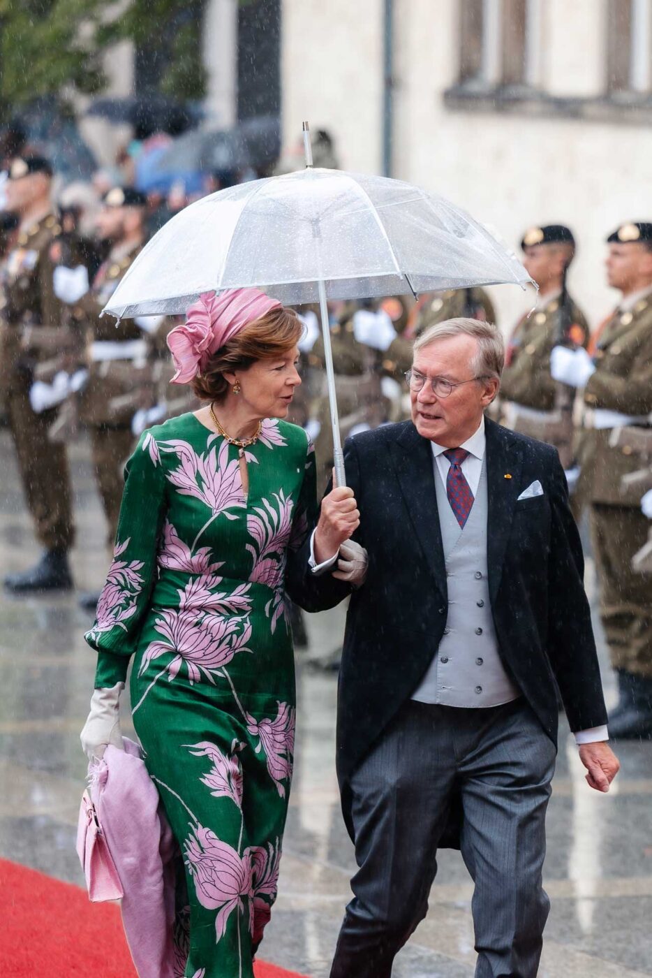 Enfin, la princesse Marie-Astrid, l’aînée de la fratrie du grand-duc Henri, est arrivée avec son époux, l’archiduc Christian d’Autriche. Le grand-duc Henri et la grande-duchesse Maria Teresa n’ont pas emprunté le tapis et sont arrivés par une porte latérale.