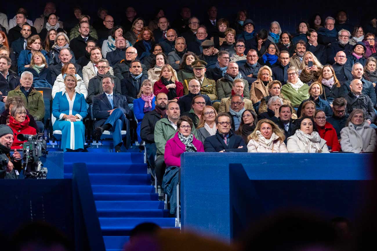 Un spectacle en plein air, sur une scène à 360 degrés, a conclu de façon magistrale les célébrations du changement de trône. Le grand-duc Guillaume et la grande-duchesse Stéphanie, mais aussi le grand-duc Henri et la grande-duchesse Maria Teresa, ont assisté à ce spectacle mettant en valeur la diversité de la scène musicale luxembourgeoise. La fratrie du nouveau grand-duc et la fratrie de l’ancien grand-duc étaient aussi présentes dans la tribune d’honneur.
