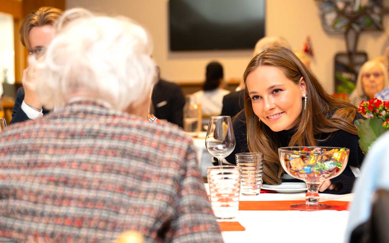 La princesse Ingrid Alexandra, héritière présomptive du trône, partage un moment à table avec les résidents (Photo : Andreas Fadum / Dana Press)