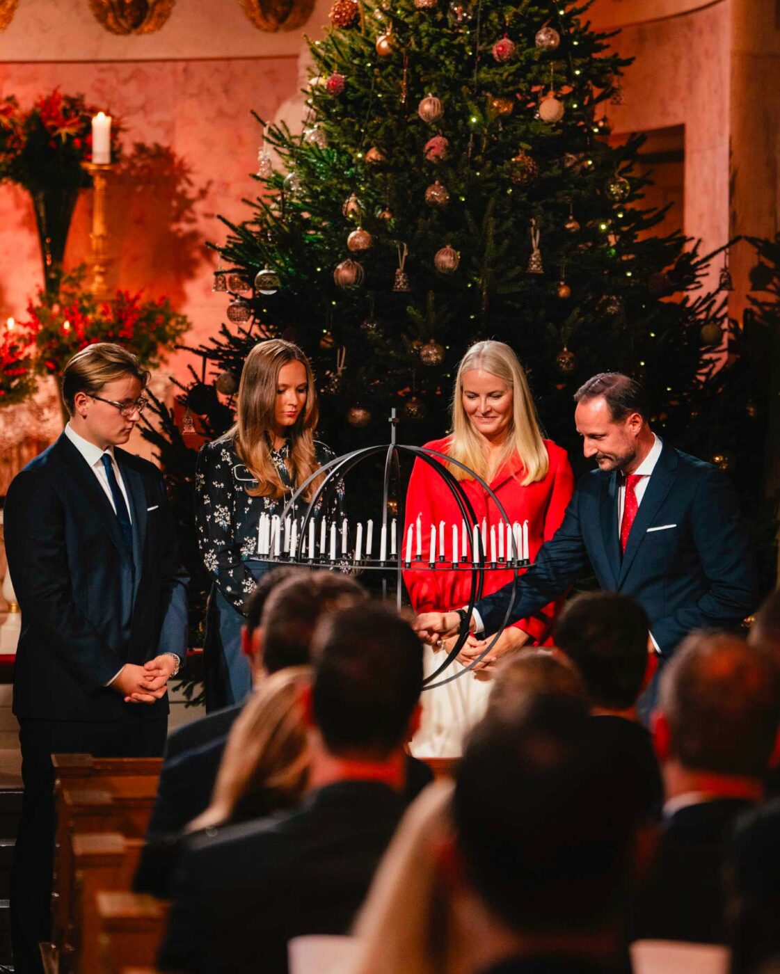 Le prince héritier Haakon et la princesse héritière Mette-Marit ont pour habitude d’organiser un service religieux et festif, quelques jours avant Noël. Cette année, le couple héritier de Norvège a mis à l’honneur le personnel qui travaille dans des services de secours. La princesse Ingrid Alexandra et le prince Sverre Magnus étaient également présents et ont participé activement à la cérémonie, à la chapelle du palais royal d’Oslo.