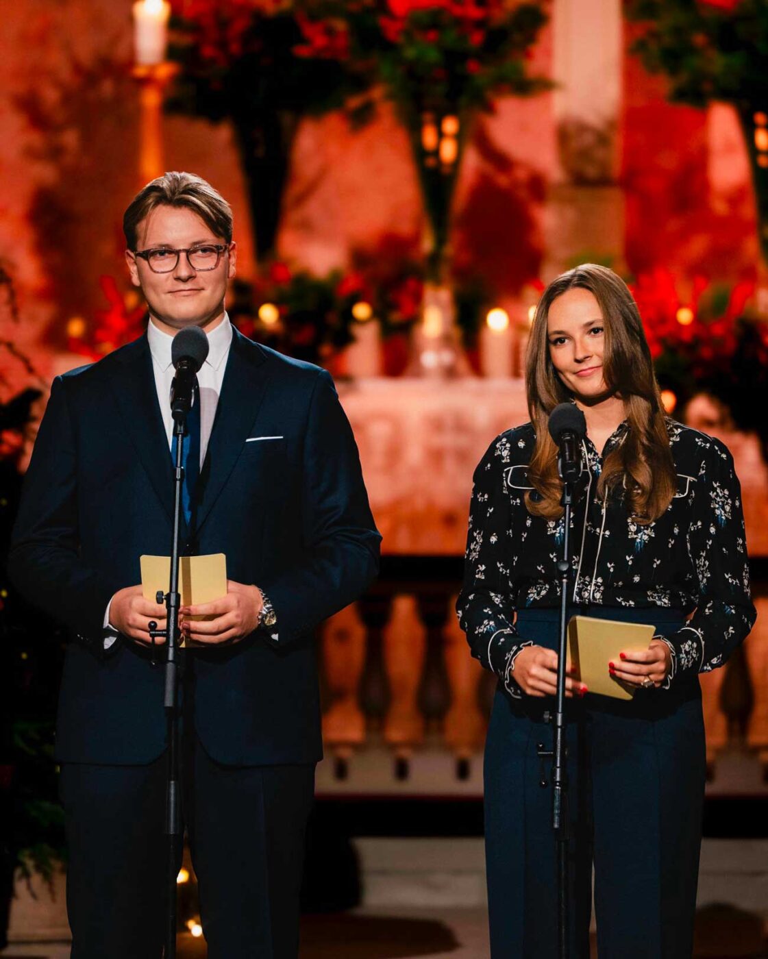 Emil Kárlsen et Sabine Nimak interprètent un chant lors de la cérémonie de Noël à la chapelle du palais royal d’Oslo (Photo : Det kongelige hoff)