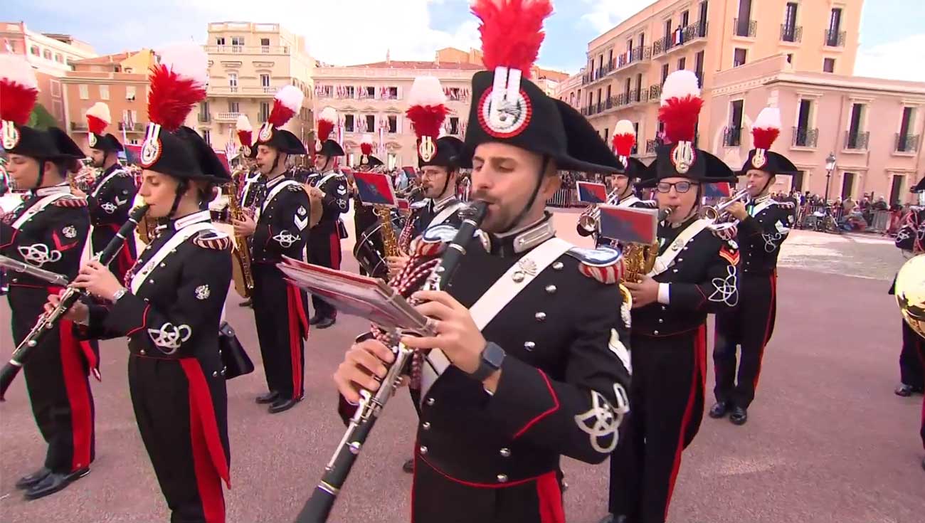 Depuis les balcons, la famille princière a pu assister à un défilé militaire qui mettait à l’honneur l’Italie cette année. La présence de la fanfare du 3e régiment des carabiniers de Lombardie, basée à Milan, marquait le 150e anniversaire de la présence diplomatique monégasque en Italie. Près de 20% des résidents monégasques sont de nationalité italienne. Les Italiens sont les troisièmes résidents monégasques les plus représentés, après les Monégasques et les Français.