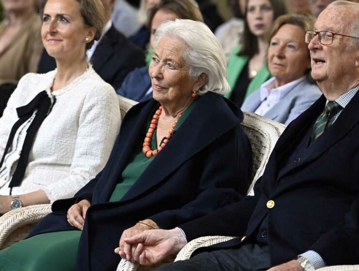 La reine Paola et le roi Albert II se tiennent la main lors d’une cérémonie avec la princesse Claire à l’orangerie du château de Laeken