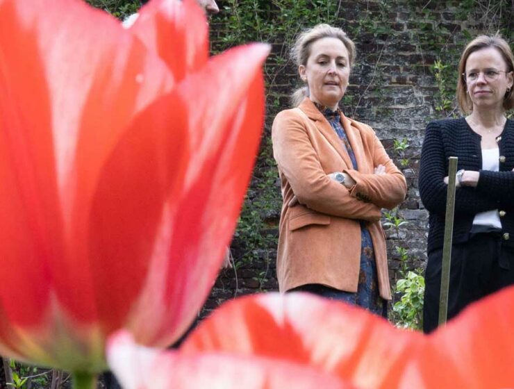 Le roi Albert II, la reine Paola et la princesse Claire récompensent des enseignants sous la coupole du Jardin d’hiver des Serres royales de Laeken