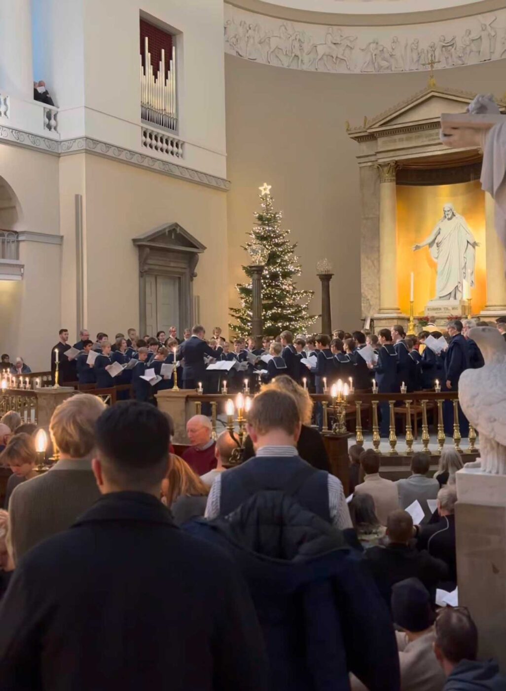 La veille de Noël a traditionnellement lieu la messe de minuit. Le 24 décembre au soir, plusieurs offices sont organisés, et la messe de minuit peut avoir lieu en fin de journée plutôt qu’à minuit pour des raisons pratiques. Ce 24 décembre 2025, un office de réveillon de Noël était célébré à la cathédrale Notre-Dame de Copenhague, en présence de la famille royale danoise.