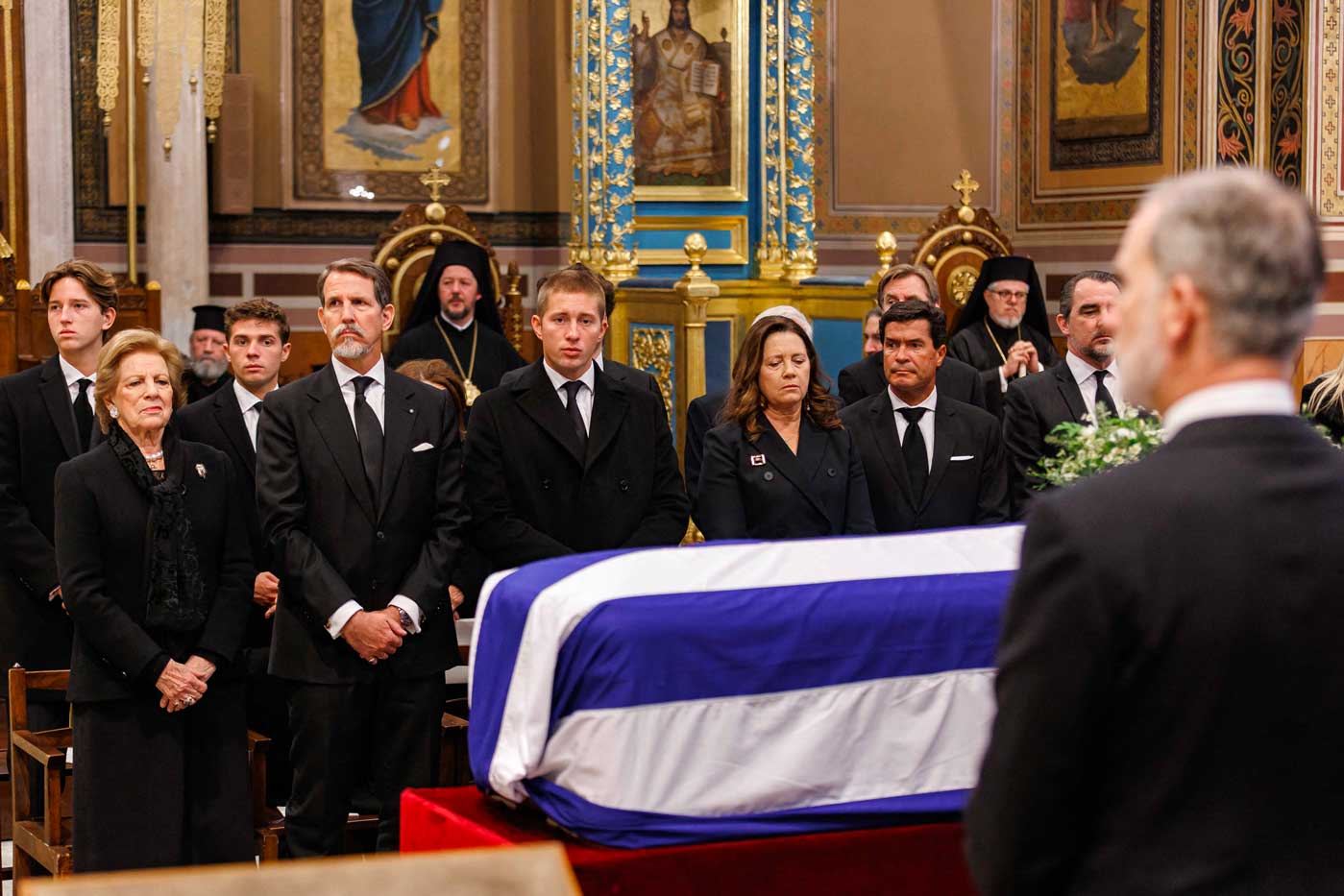 La reine Anne-Marie de Grèce, veuve du roi Constantin II, était entourée de sa famille ce lundi pour faire ses adieux à sa belle-sœur. Il y a deux ans, quasiment jour pour jour, la princesse Irène elle-même avait fait le déplacement depuis Madrid pour assister aux funérailles de son frère, dans cette même cathédrale. Depuis le décès du dernier roi des Hellènes, la reine Anne-Marie représente dignement l’ancienne famille royale aux côtés de son fils aîné, le prince héritier Pavlos, dorénavant chef de la dynastie.