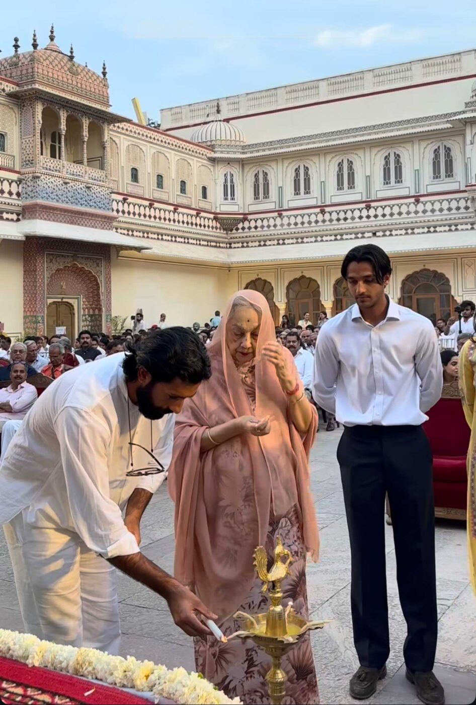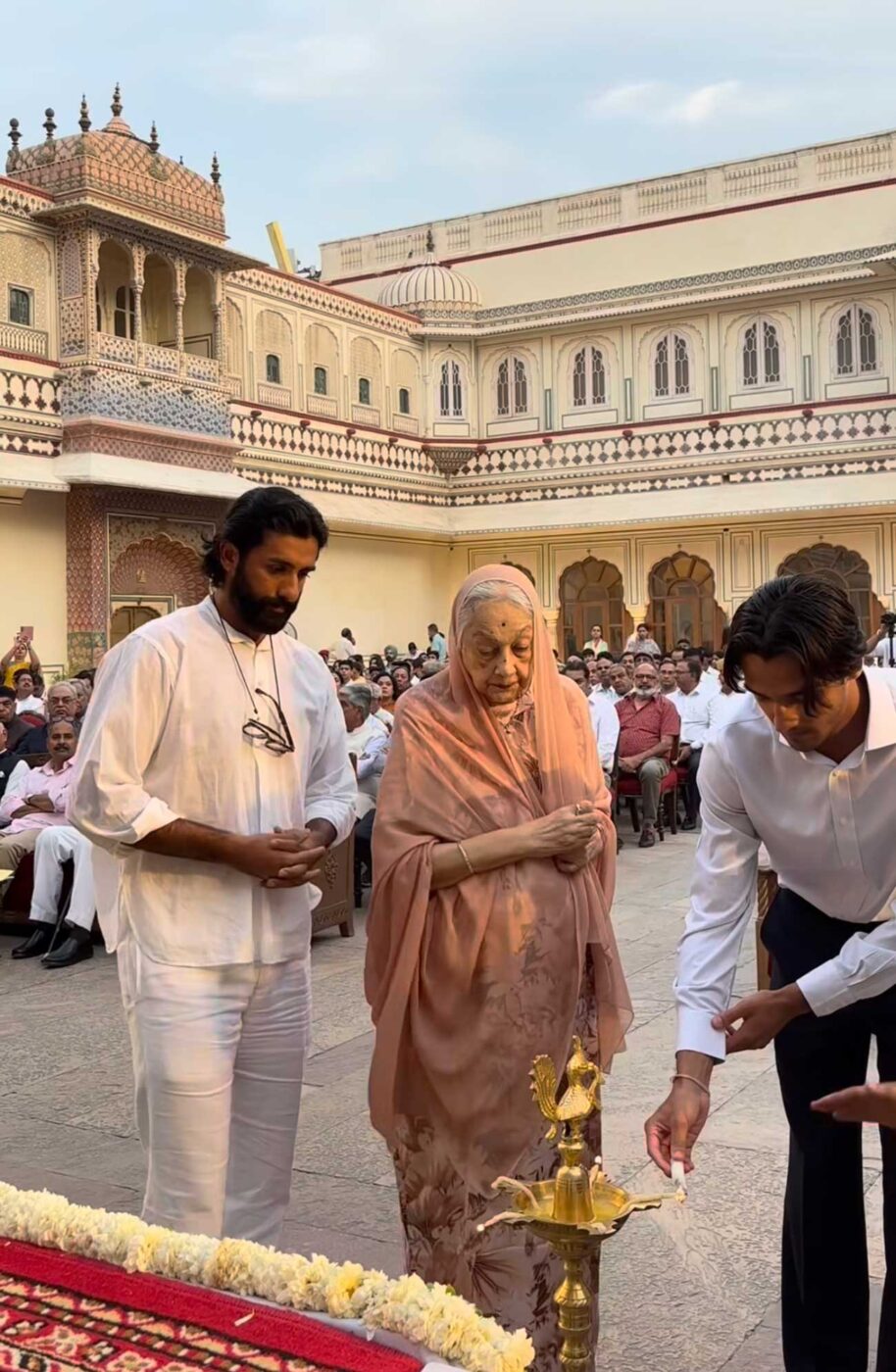 Le maharadja Padmanabh Singh, 27 ans, actuel chef de la famille royale de l’ancien État princier du Jaipur, a participé à certaines cérémonies en hommage à son grand-père. Le maharadja de Jaipur était accompagné de son frère, le prince Lakshraj Prakash, qui est lui aussi le chef d’une autre ancienne famille royale, celle de Sirmour. Le maharadja de Jaipur et le maharadja de Sirmour ont une sœur, la princesse Gauvari Kumari, qui les seconde dans leurs tâches. Lors des célébrations, on a également pu apercevoir, la dernière reine de Jaipur, Padmini Devi. Padmini Devi, âgée de 82 ans, est la veuve du maharadja Bhawani Singh.
