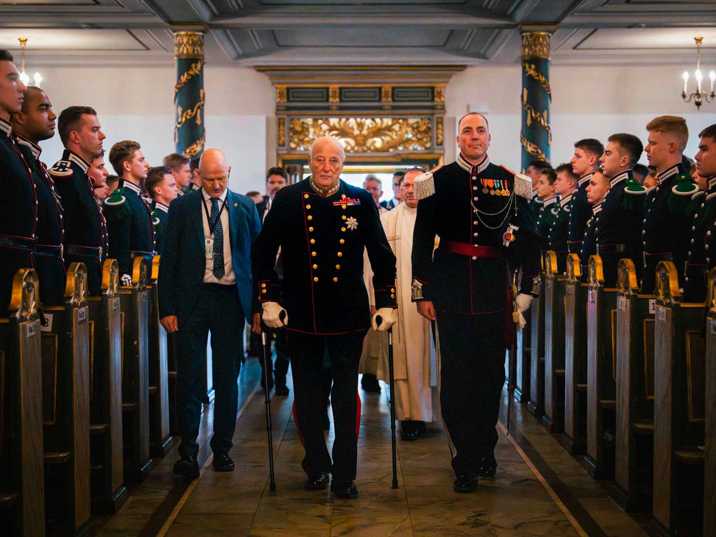 Le roi Harald V entre dans la cathédrale d’Oslo ce 9 décembre 2025 (Photo : Ola Vatn, Det kongelige hoff)