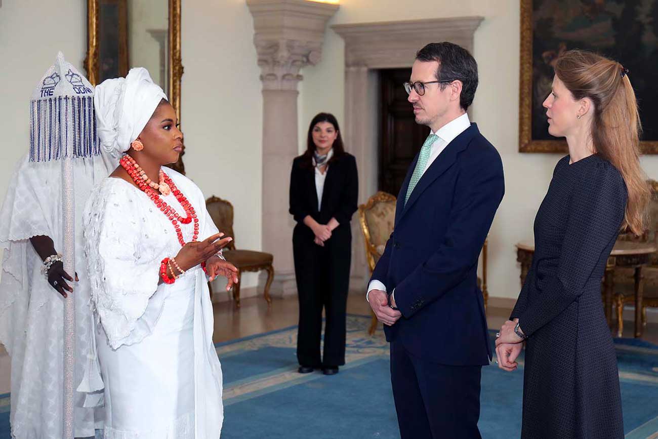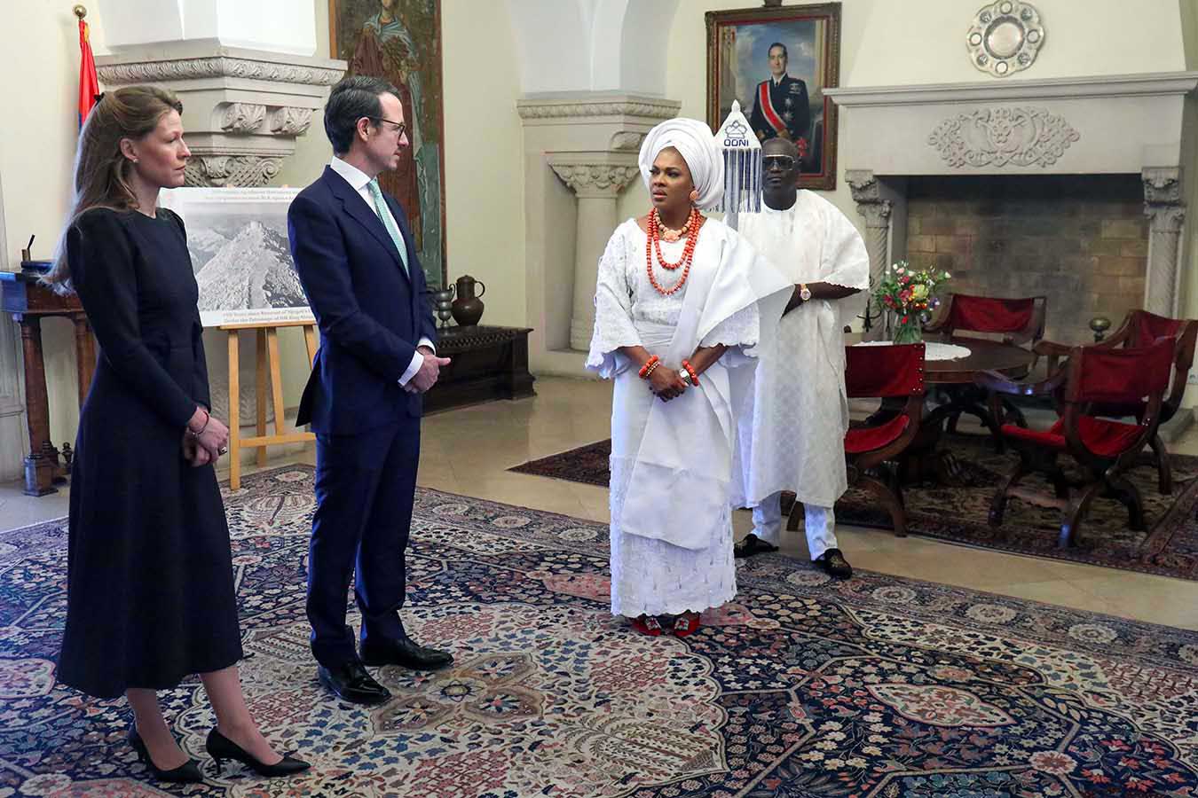L’épouse de l’Ooni d’Ife rencontre le prince héritier Alexander de Serbie et sa famille